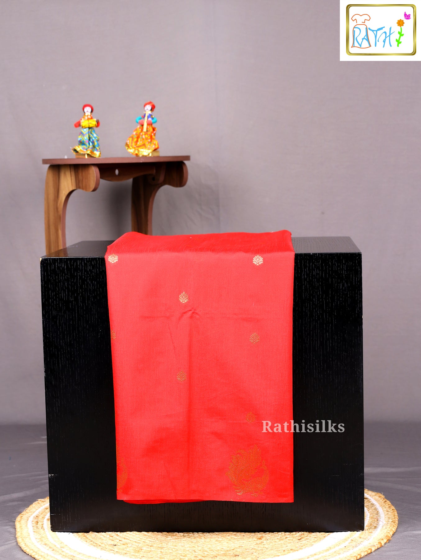 Elevate your ethnic elegance with this stunning red art silk saree, adorned with delicately woven golden motifs that enhance its rich traditional appeal. The saree features intricate zari detailing along the border and pallu, adding a regal touch to its vibrant base. Designed to offer a graceful drape and a timeless festive charm, this saree is perfect for traditional celebrations, cultural ceremonies, and special occasions. Its luminous finish and refined craftsmanship make it a standout addition to your wardrobe.