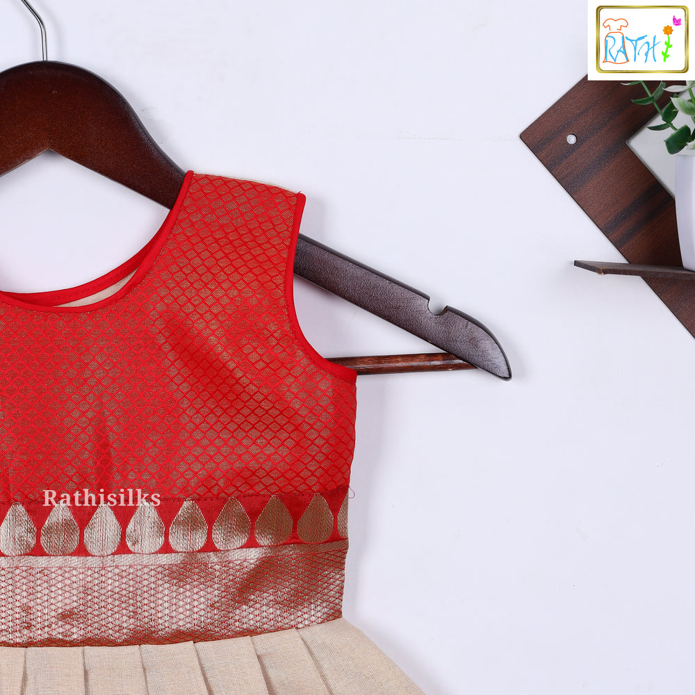 Designer Sandal Top with Red Art Silk Pavadai Set