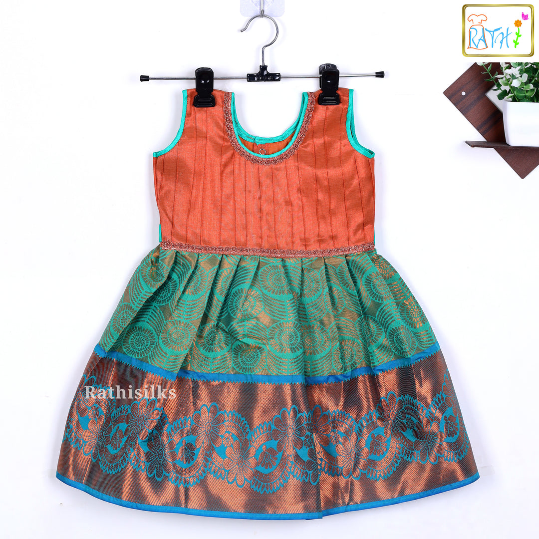 Elegant Pink & Aqua Art Silk Pavadai Set