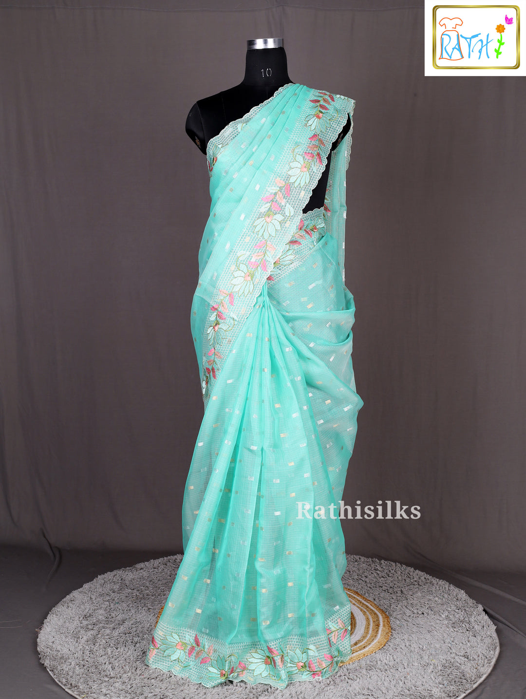 Grey Lotus & Cow Design Cotta Cotton Saree