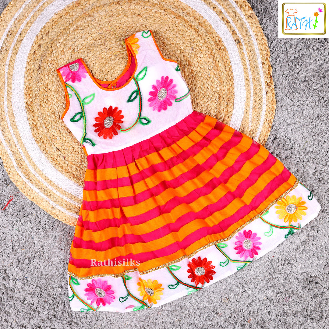 Vibrant Pink & Orange Embroidered Frock