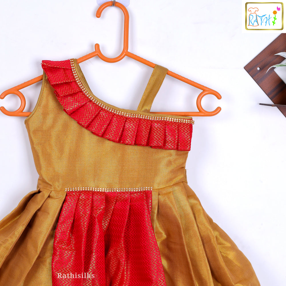Traditional Red & Gold Art Silk Frock