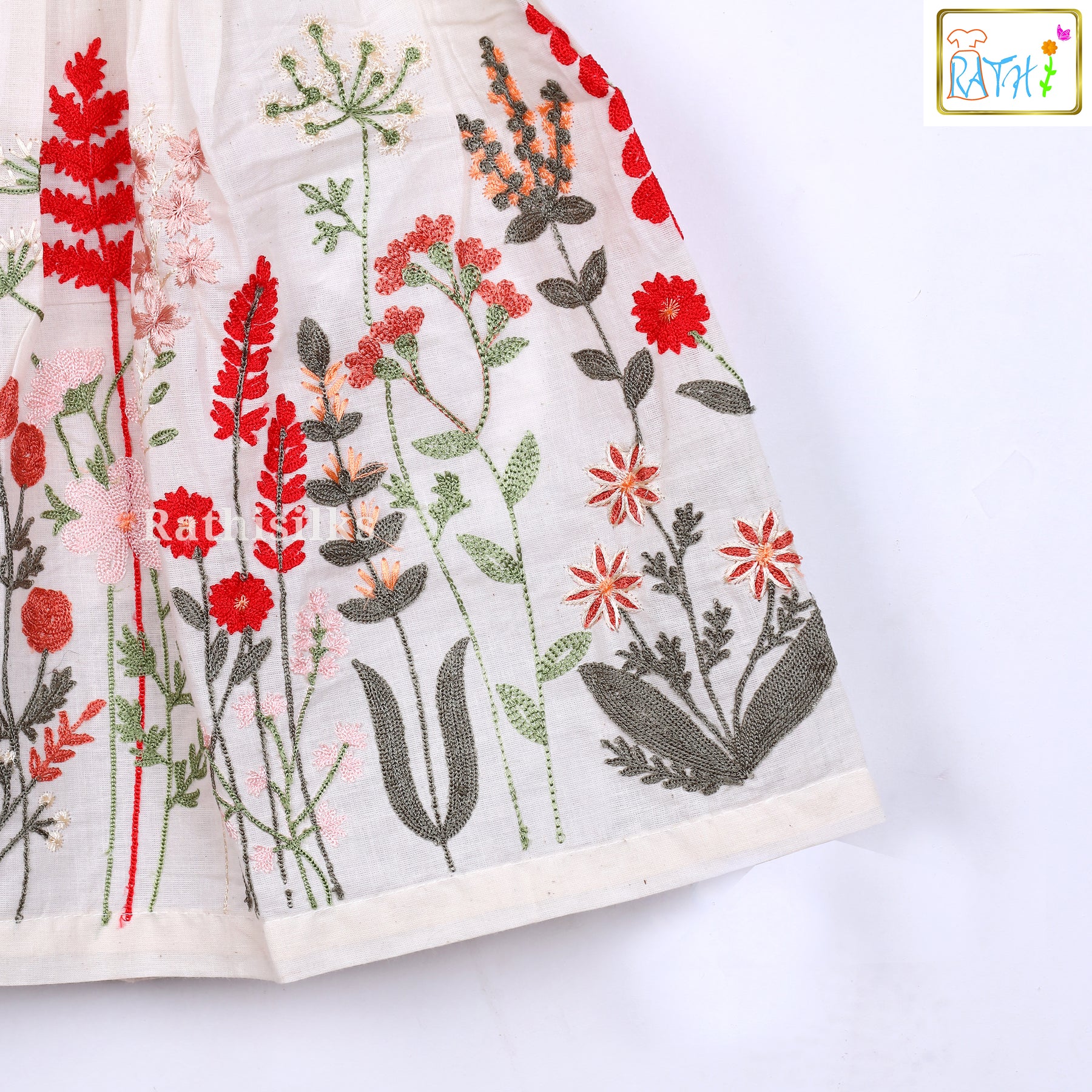 • Color : Cream base with Red coat and multicolor embroidery