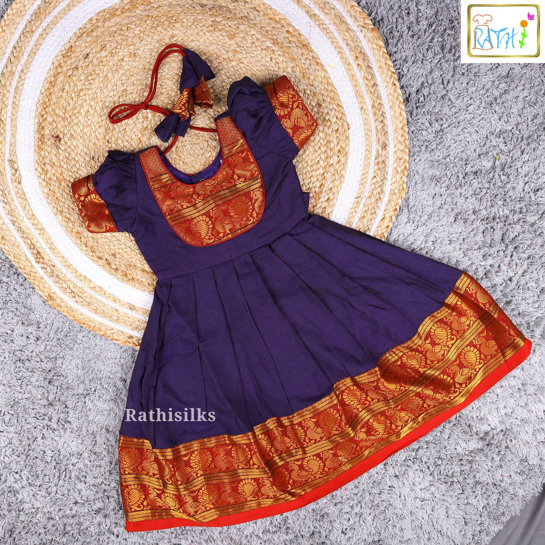 Navy Blue Narayana Pet Design Traditional Kids Frock