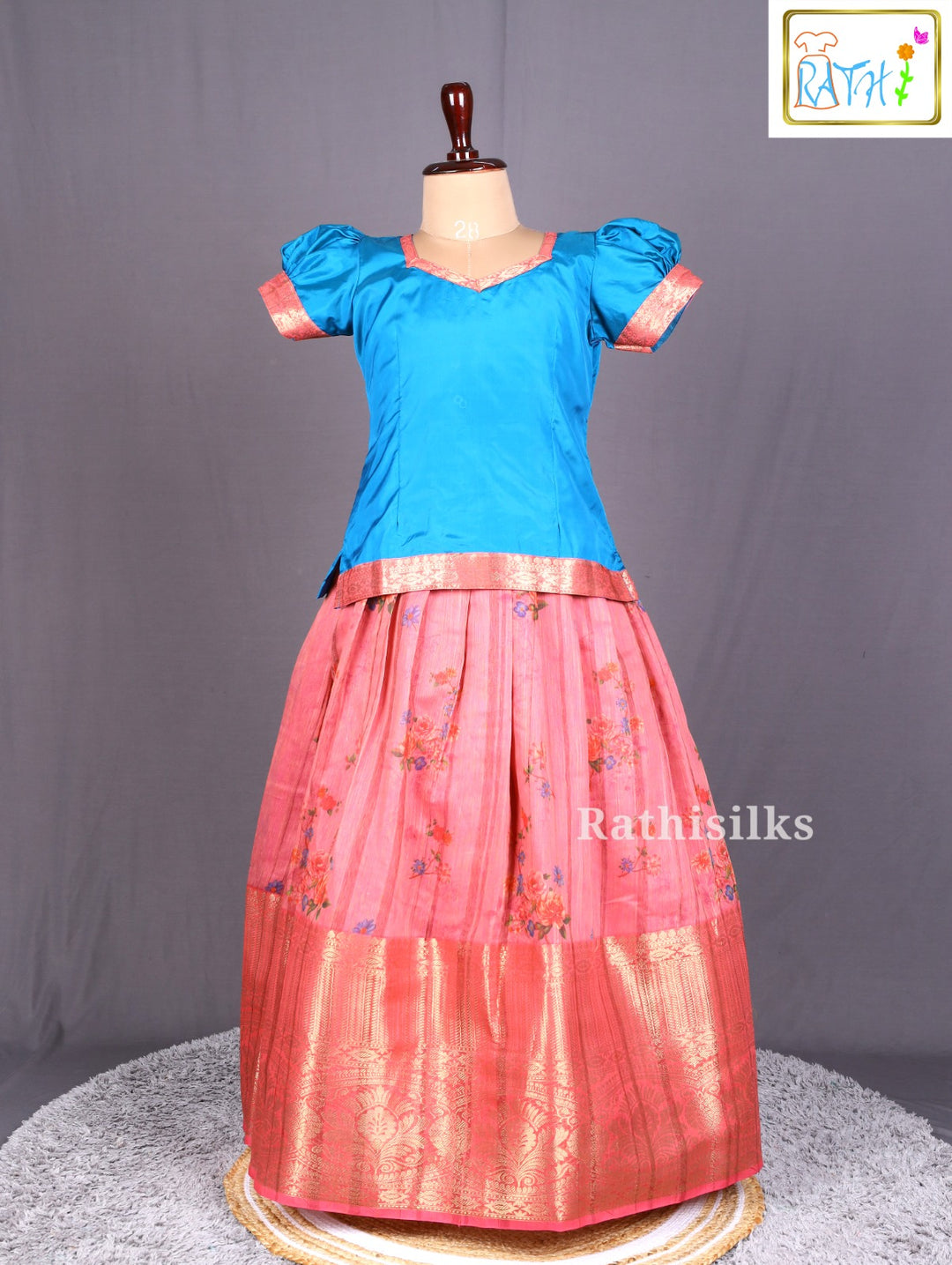 Blue Karishma Top with Pink Floral Art Silk Pavadai