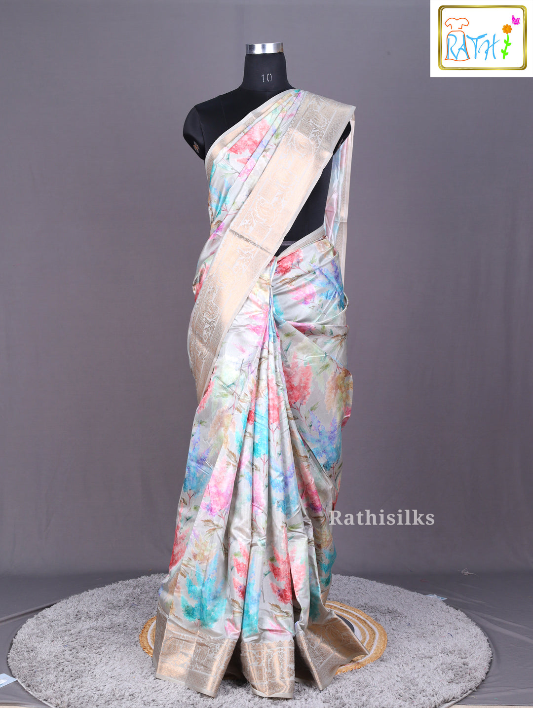Light Grey Synthetic Saree