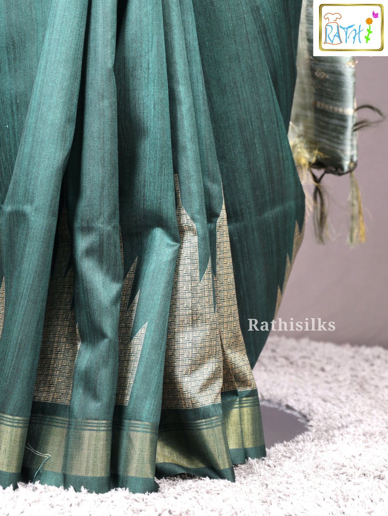 ·         Design : Green body with woven gold and beige geometric border for a rich and traditional feel.