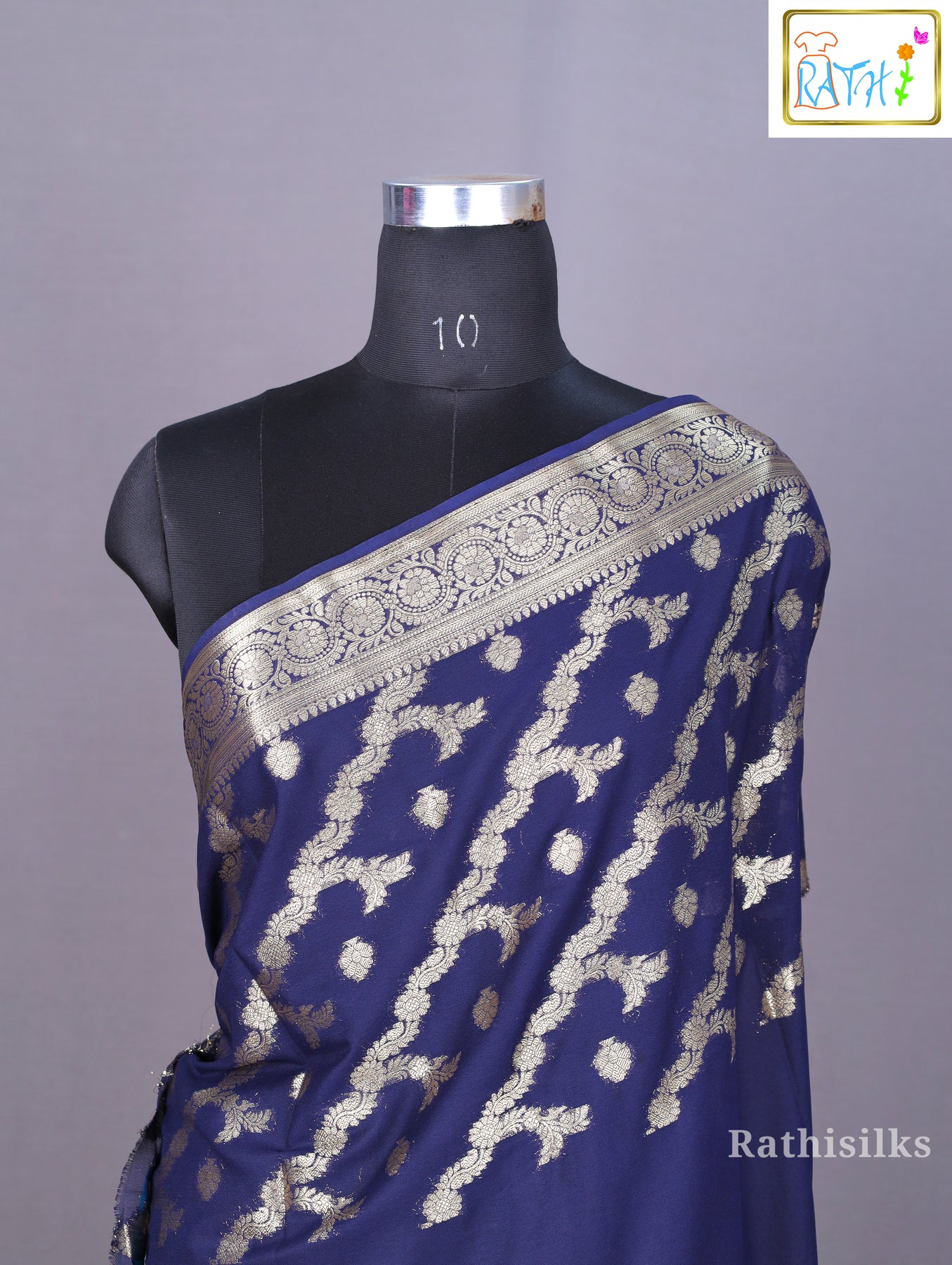 Blue and Navy Synthetic Saree with Golden Embellishments