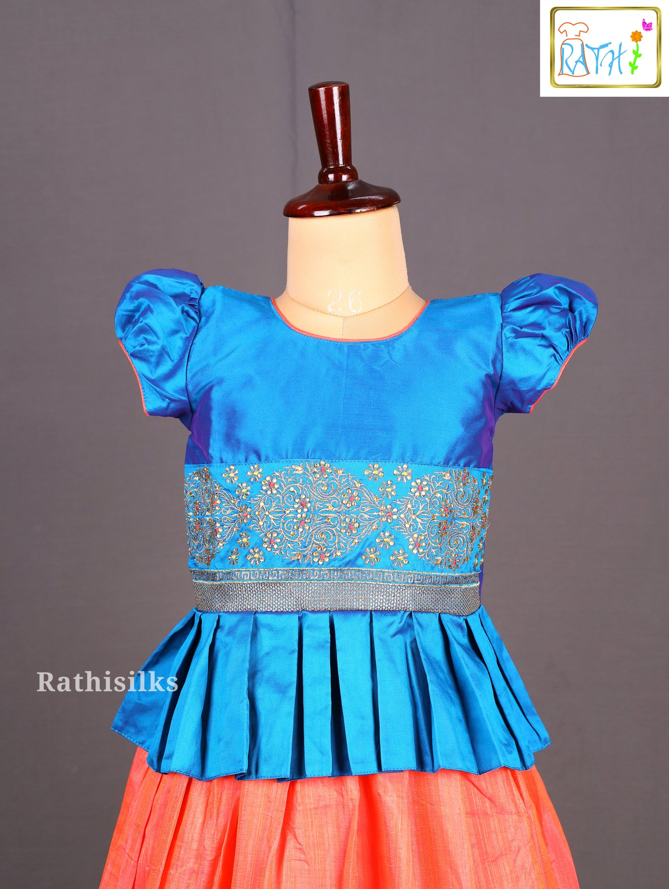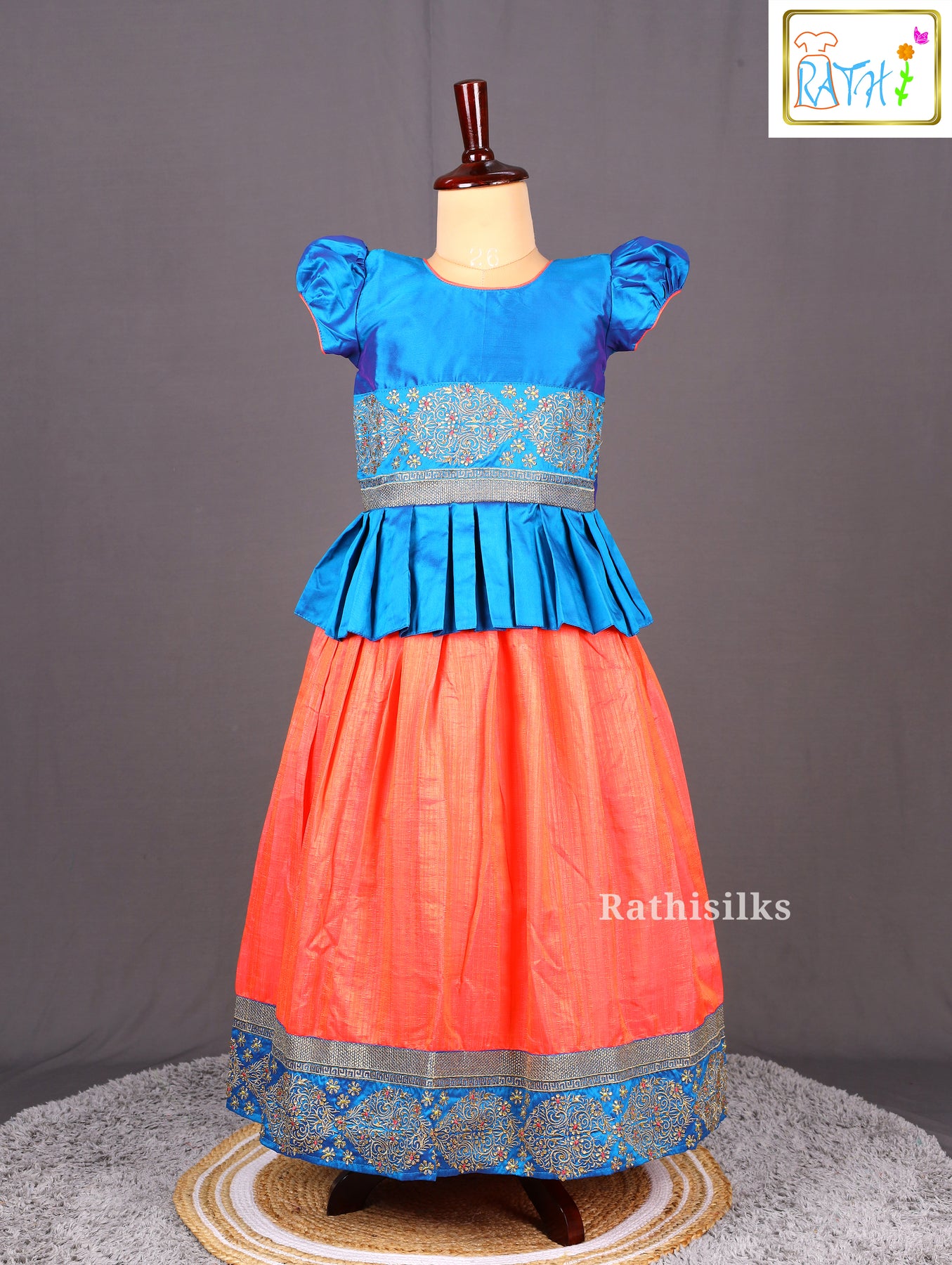 Elegant Blue & Peach Art Silk Pavadai Sattai