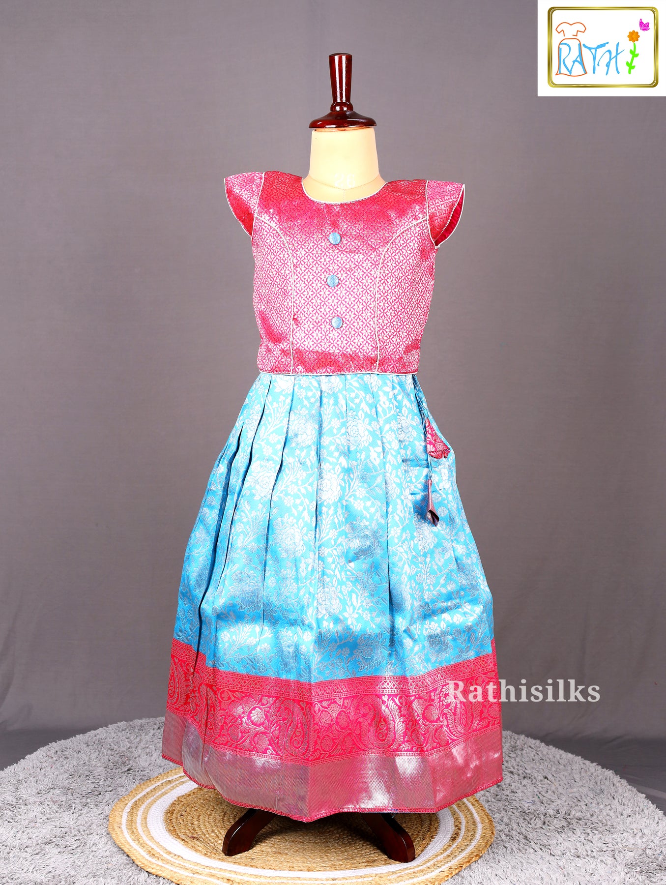 Pink Banarasi Top with Blue Banarasi Pavadai Set