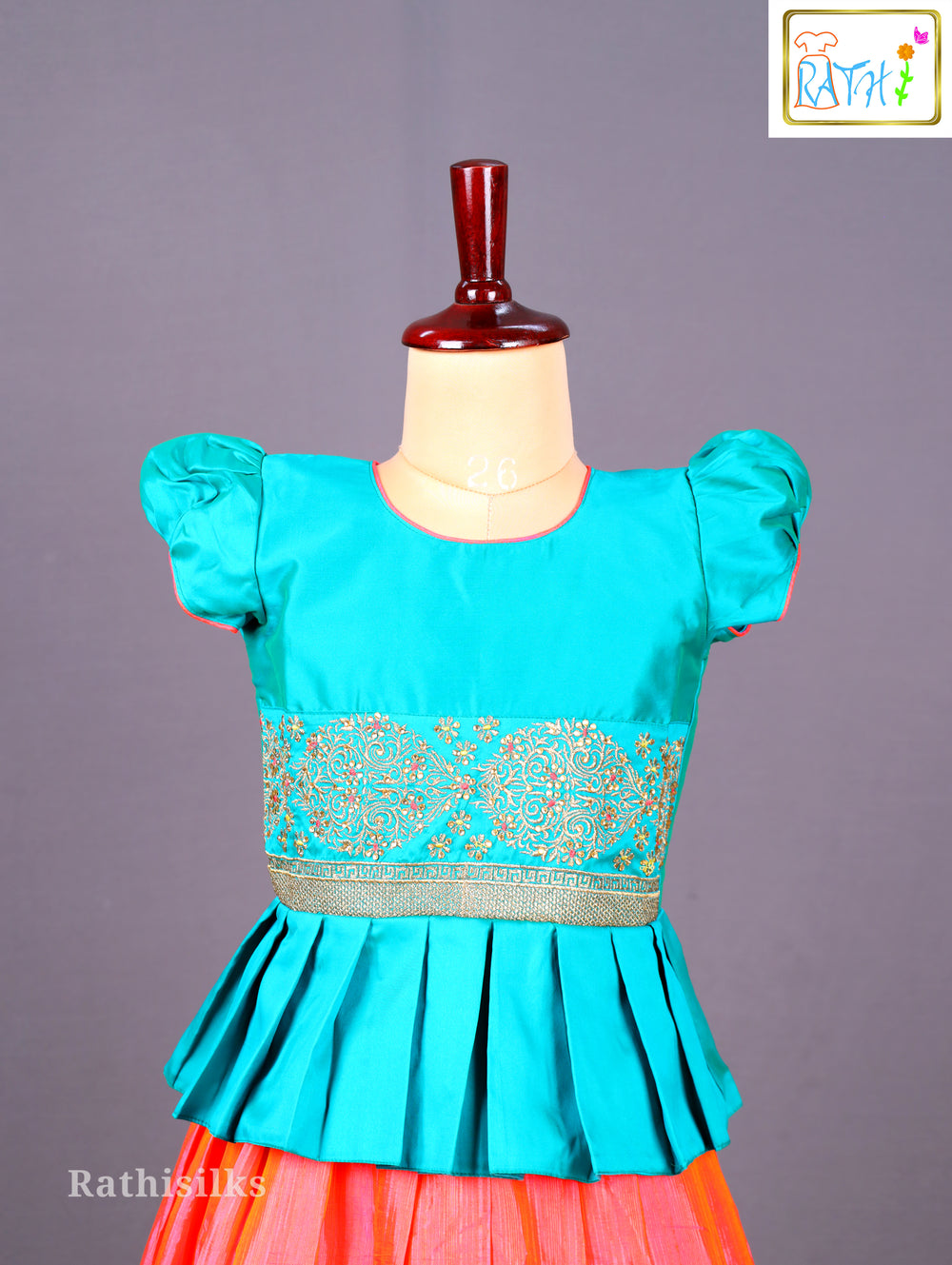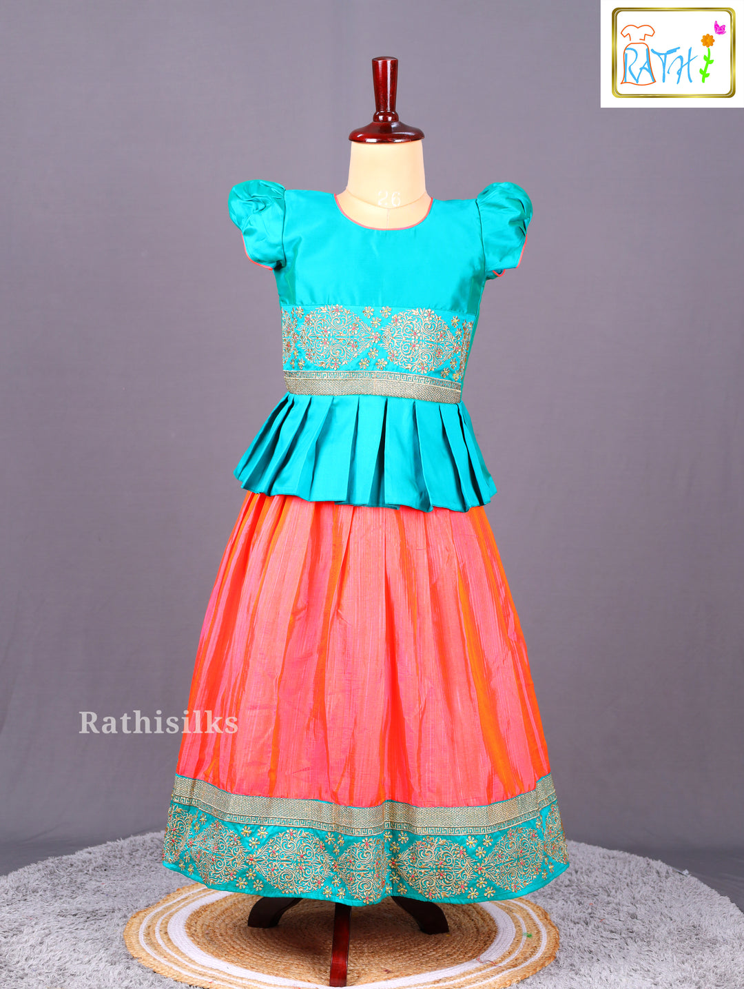 Girls’ Pink & Blue Art Silk Pavadai Sattai