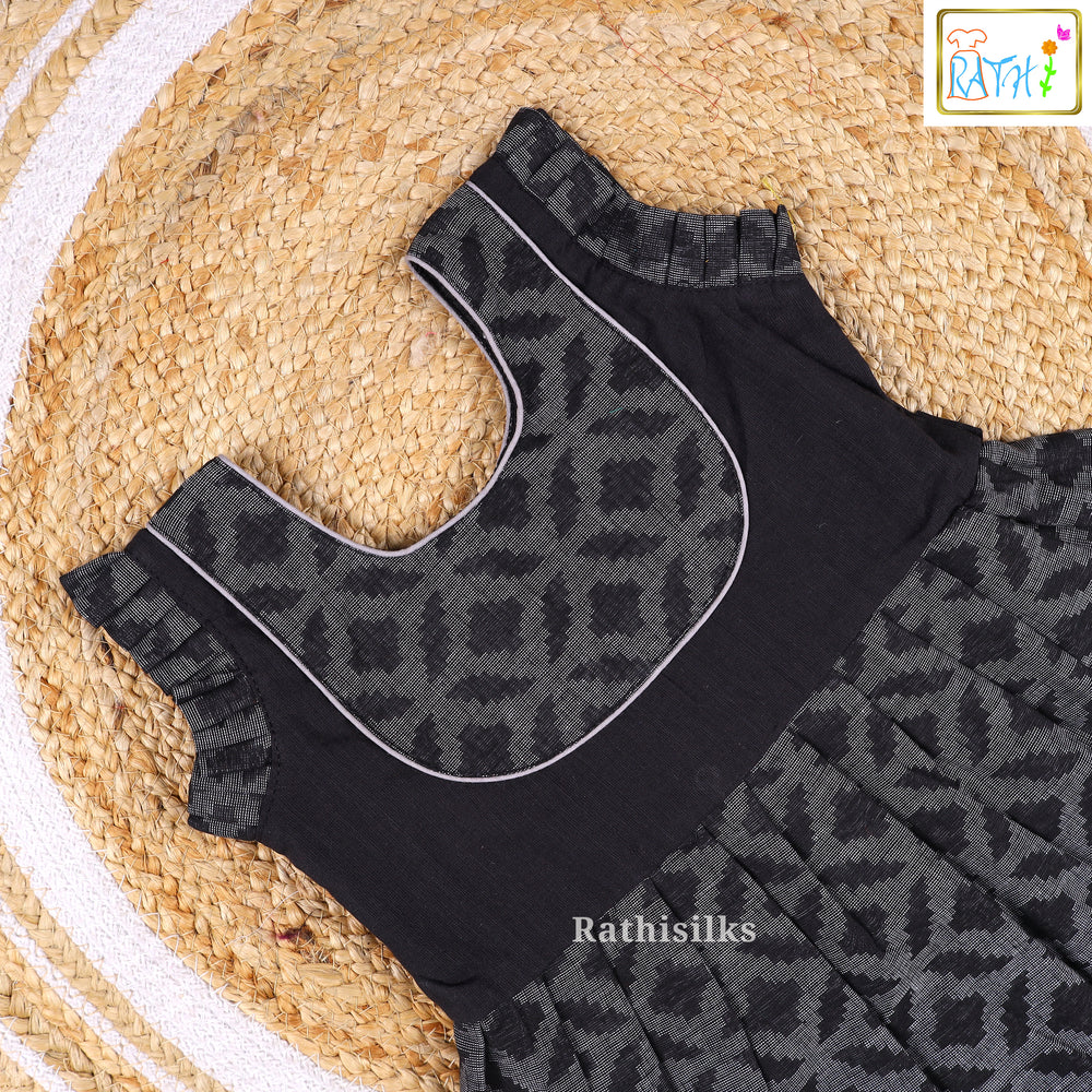 Black Ikat Pattern Cotton Frock