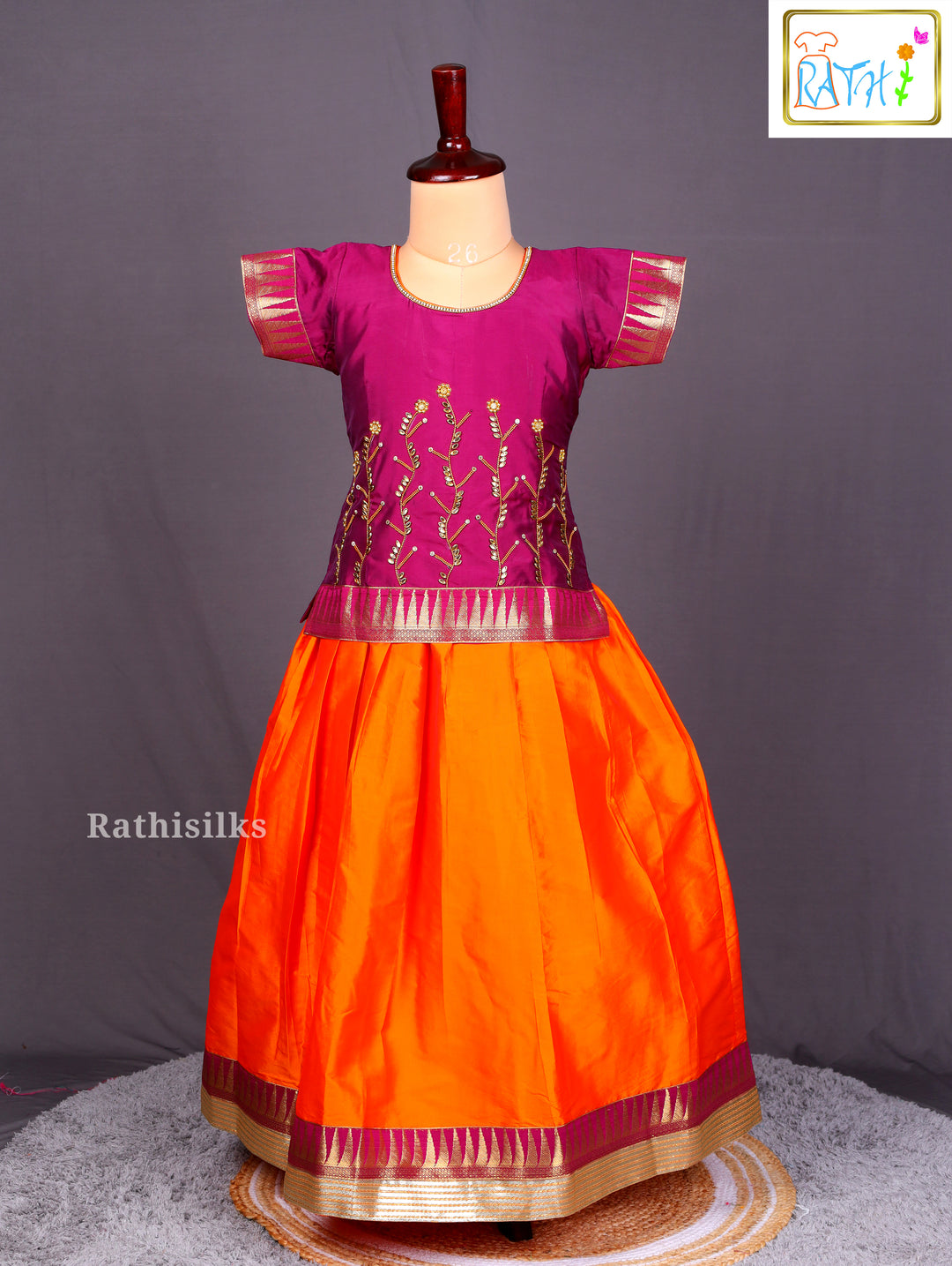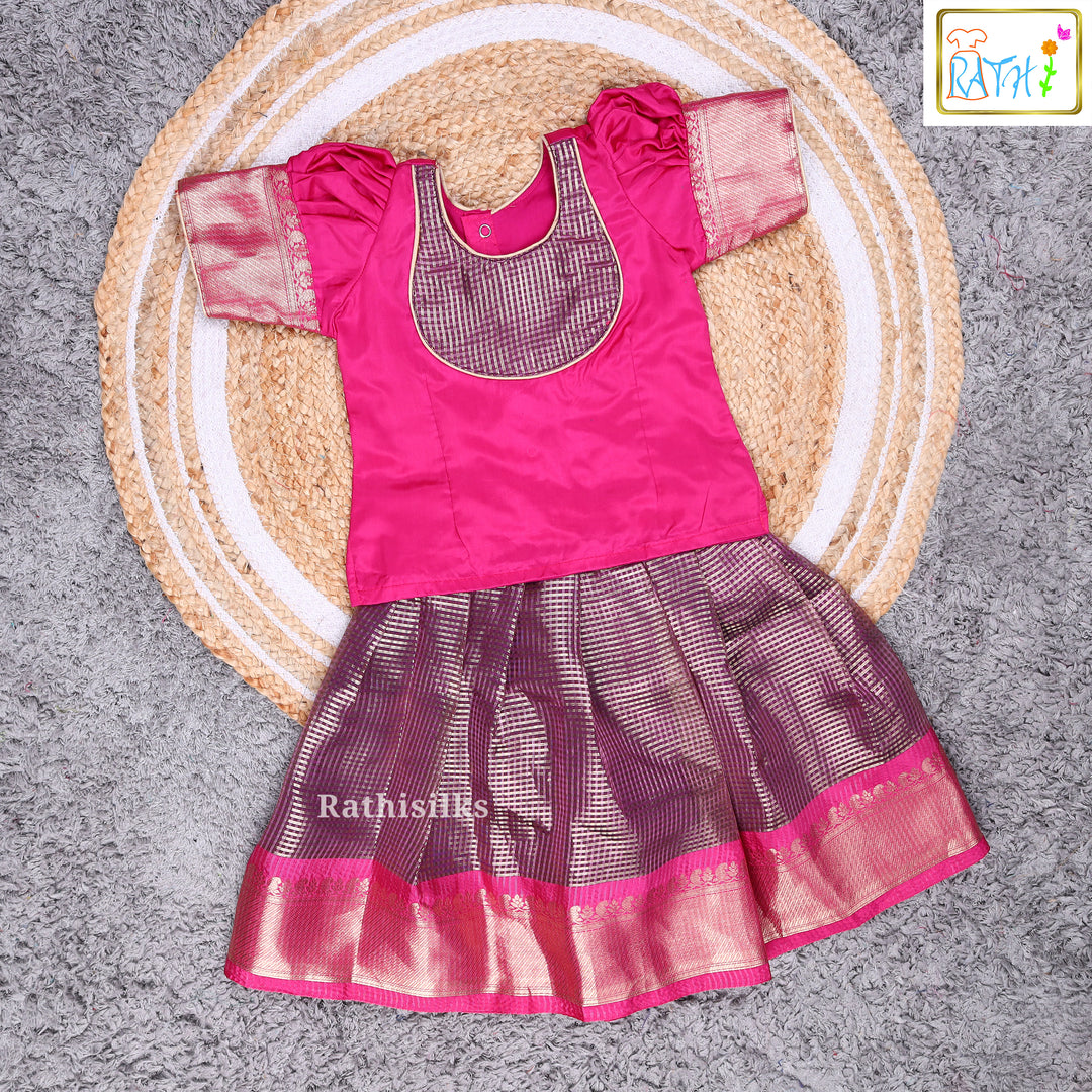 Magenta & Orange Art Silk Pavadai Sattai