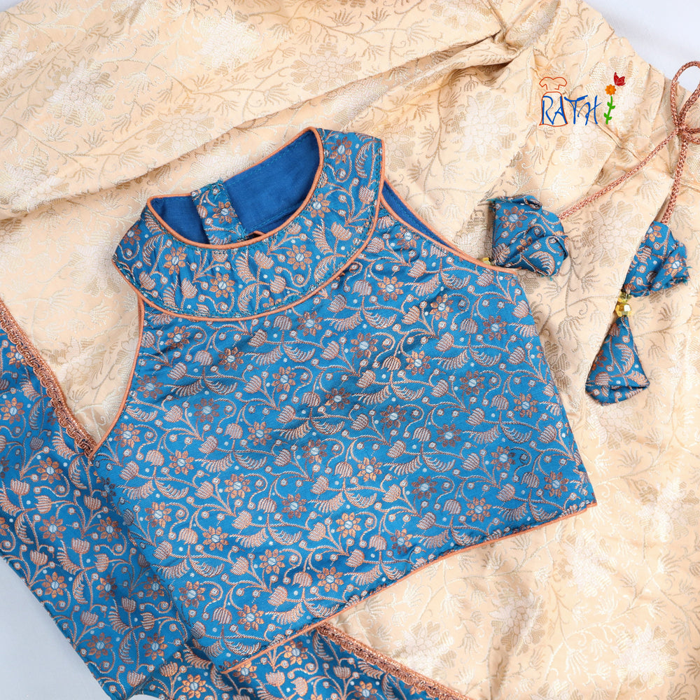 Blue Brocade Top with Pink Jacquard Art Silk Pavadai Set