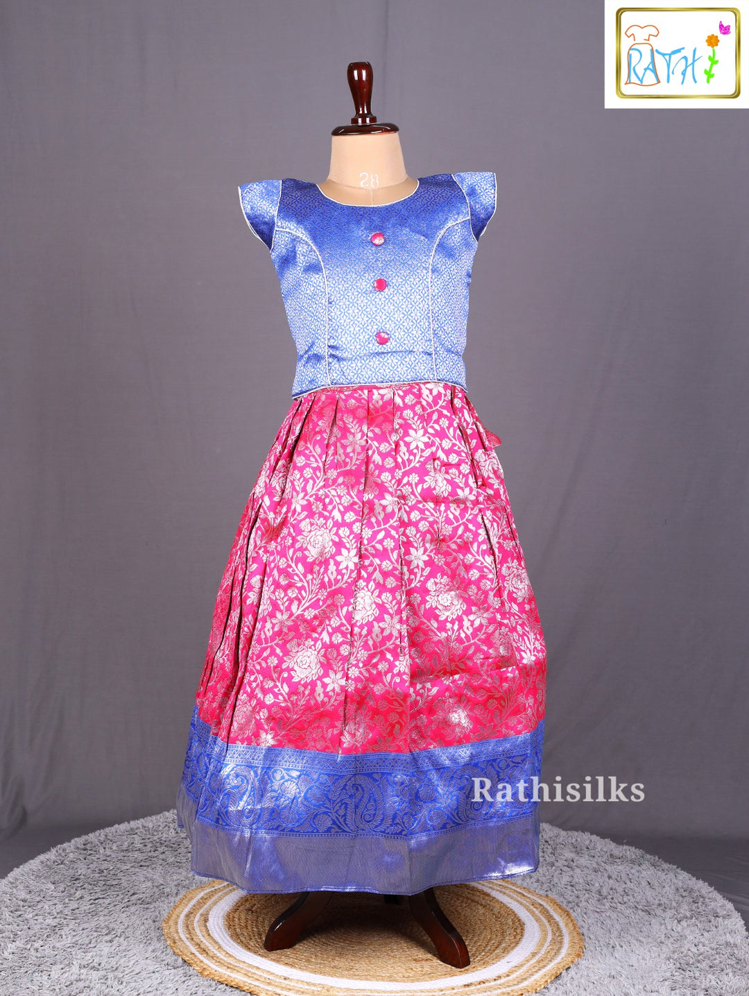 Pink Banarasi Top with Blue Banarasi Pavadai Set