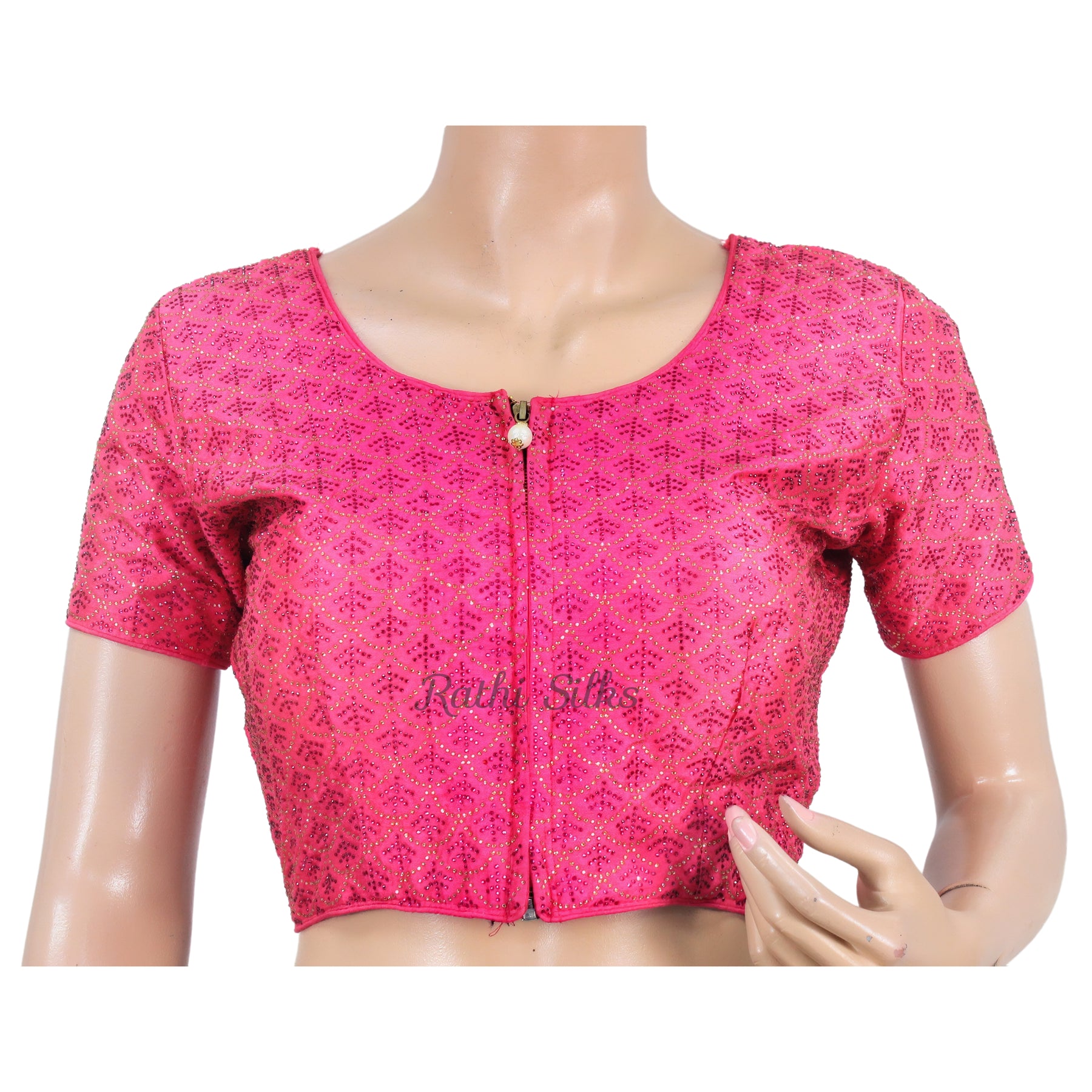Patterned blouse with beautiful stone work. front zippered blouse.