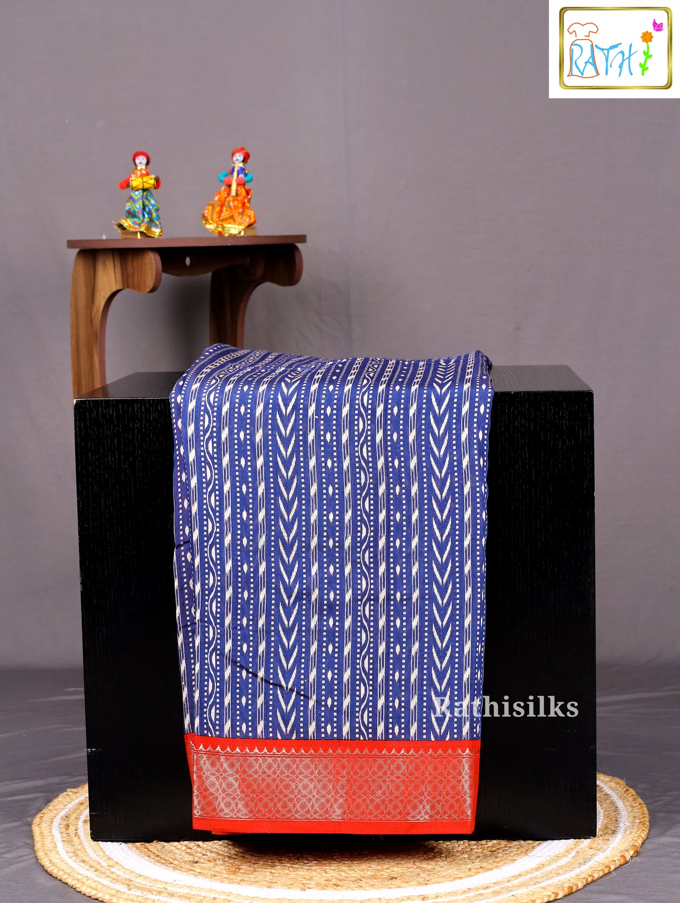 Elevate your ethnic collection with this beautiful Blue Ikat Design Synthetic Saree, featuring an intricate all-over printed pattern inspired by traditional ikat artistry. The saree is enhanced with a vibrant contrast red zari border that adds a rich traditional touch while maintaining contemporary elegance. Lightweight, smooth, and easy to drape, this saree is perfect for festive celebrations, temple visits, family functions, and cultural gatherings. Its striking colour contrast and artistic detailing make it a timeless and effortlessly stylish addition to any wardrobe.