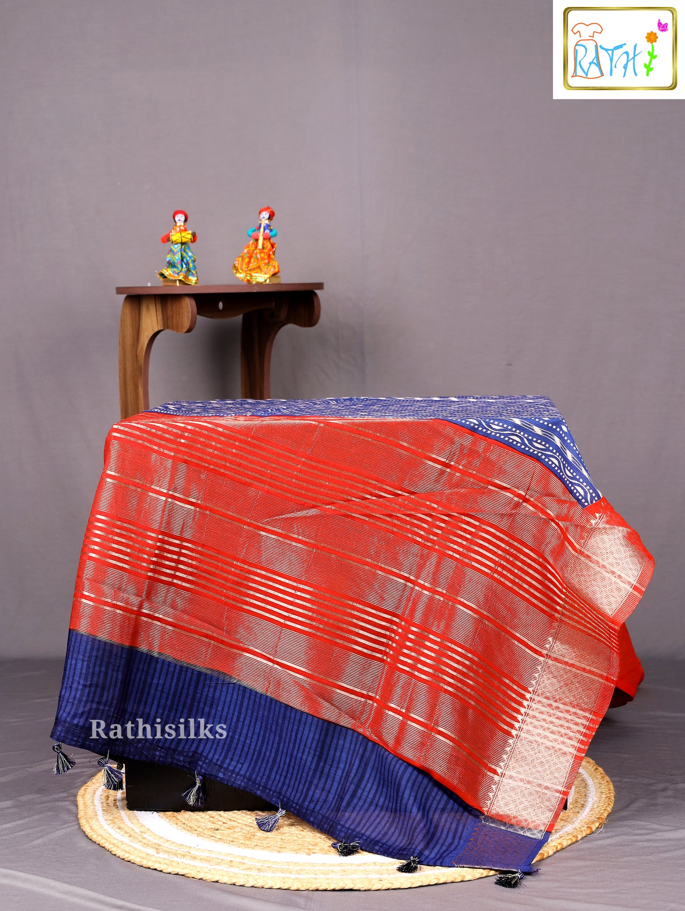 • Contrast red zari border for an elegant traditional finish