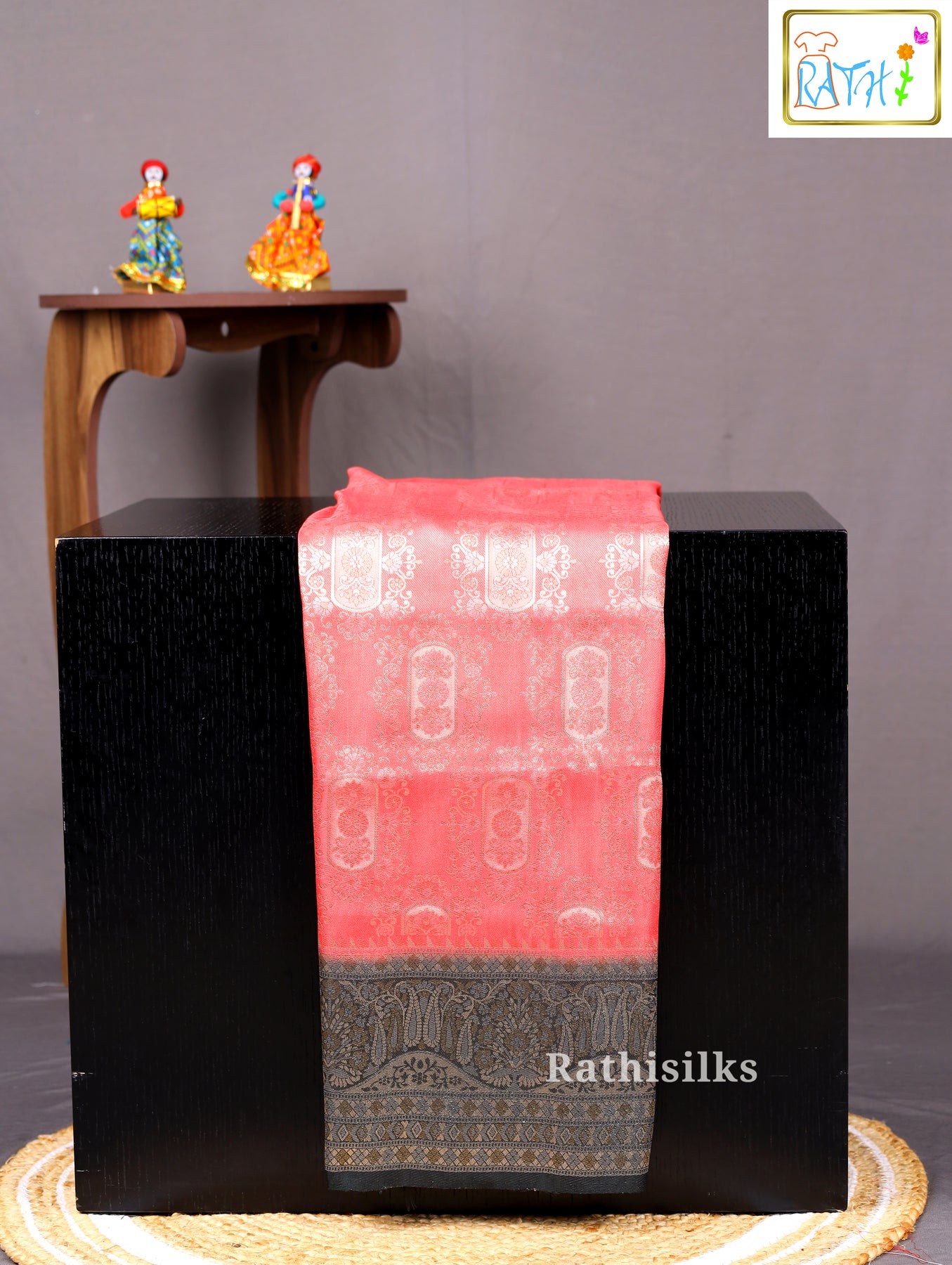 This beautiful peach art silk saree is designed with a rich all-over woven motif pattern that enhances its traditional charm. The saree features an intricately crafted silver zari border paired with a striking contrast pallu, adding an exquisite touch to its overall appeal. Soft, lightweight, and easy to drape, this saree is perfect for festive occasions, cultural events, and family celebrations. Its elegant detailing and vibrant finish make it a standout choice for any special occasion.