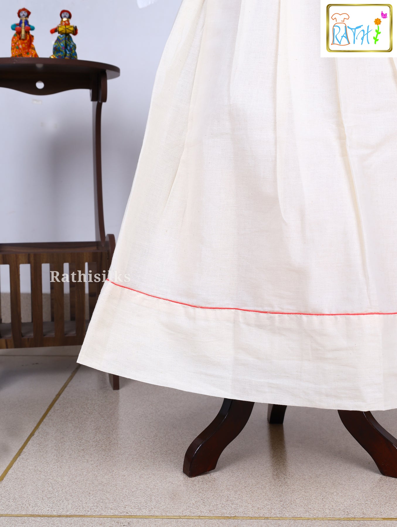 Girls Ivory Cotton Top & Cotton Pavadai Set – Floral Embroidered Traditional Festive Wear
