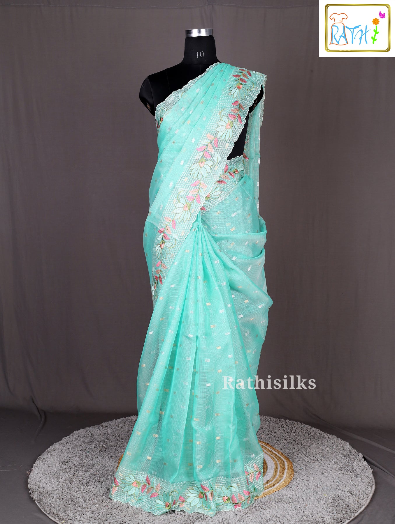 · Border Style : Scalloped Floral Embroidered Border