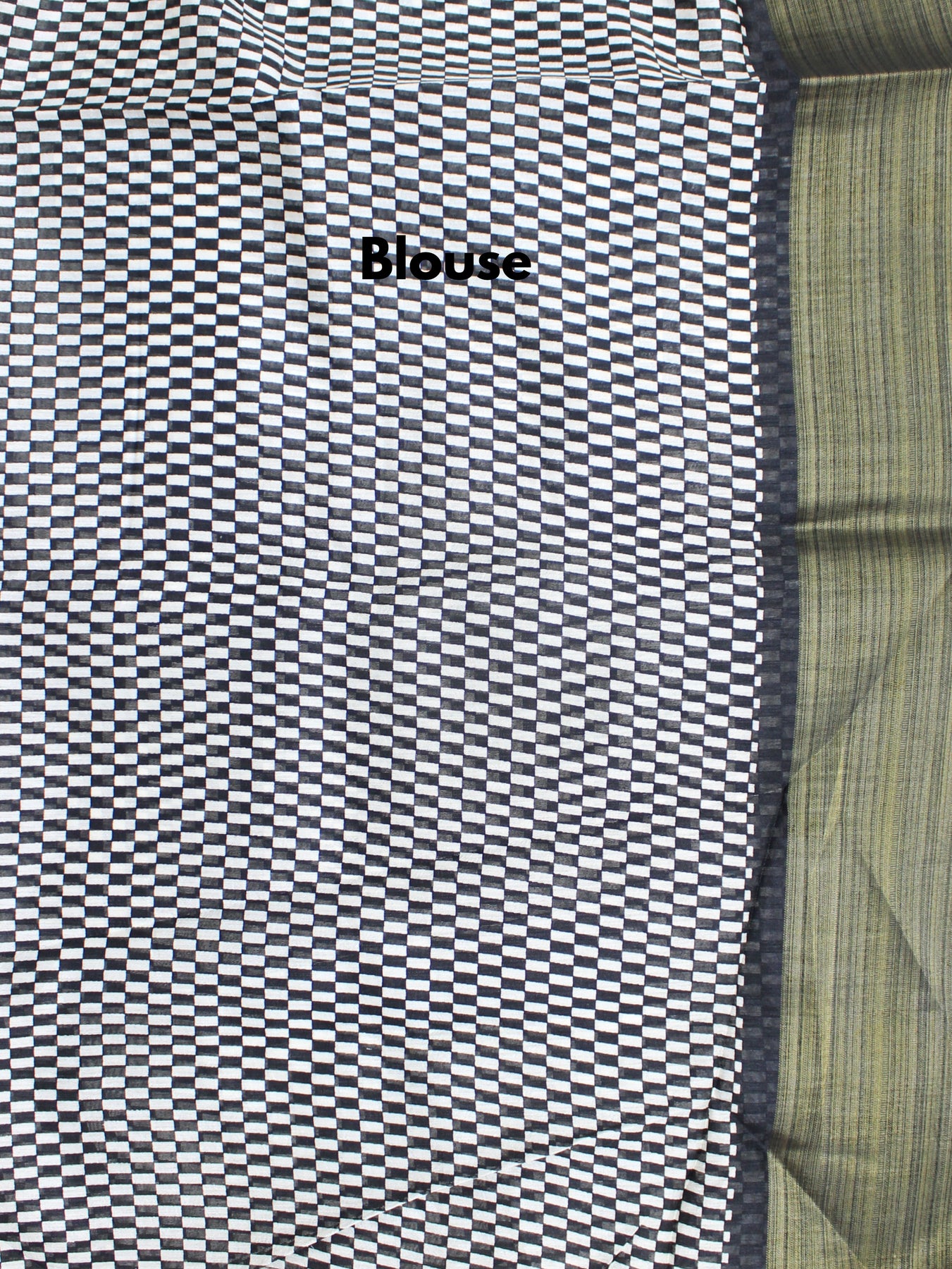 Semi-Chanderi Checkered Saree Black & White with Gold Border