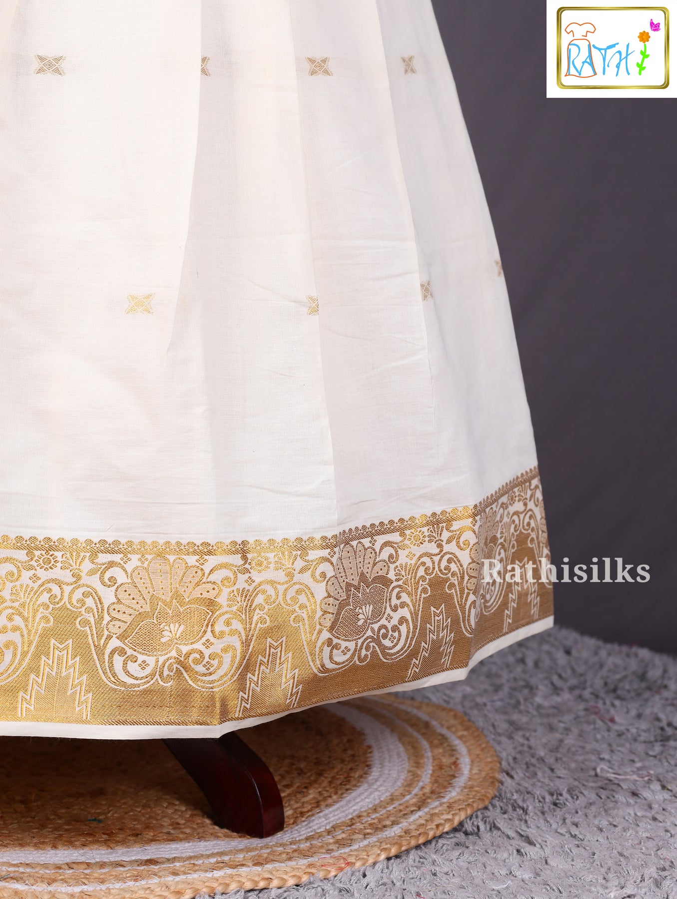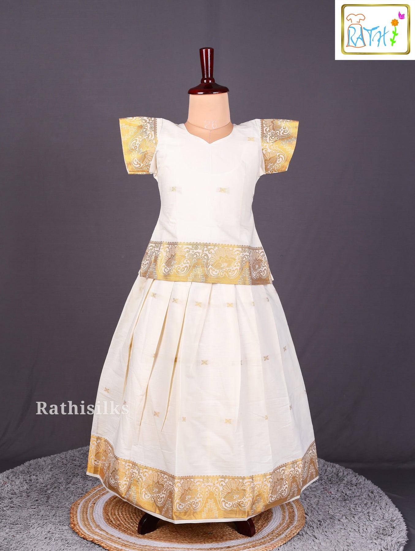 Traditional Kerala Pavadai Set for Girls – Off-White & Gold