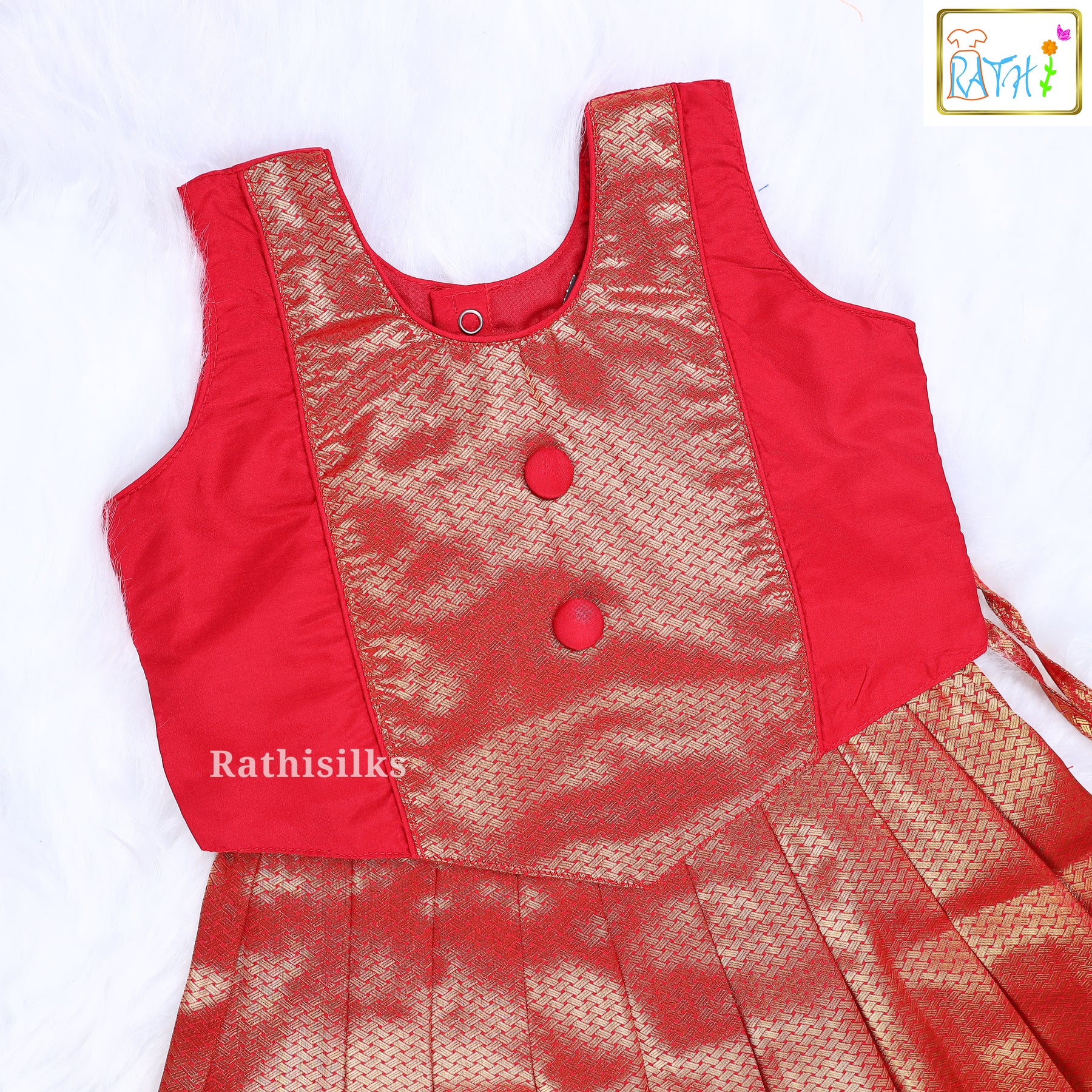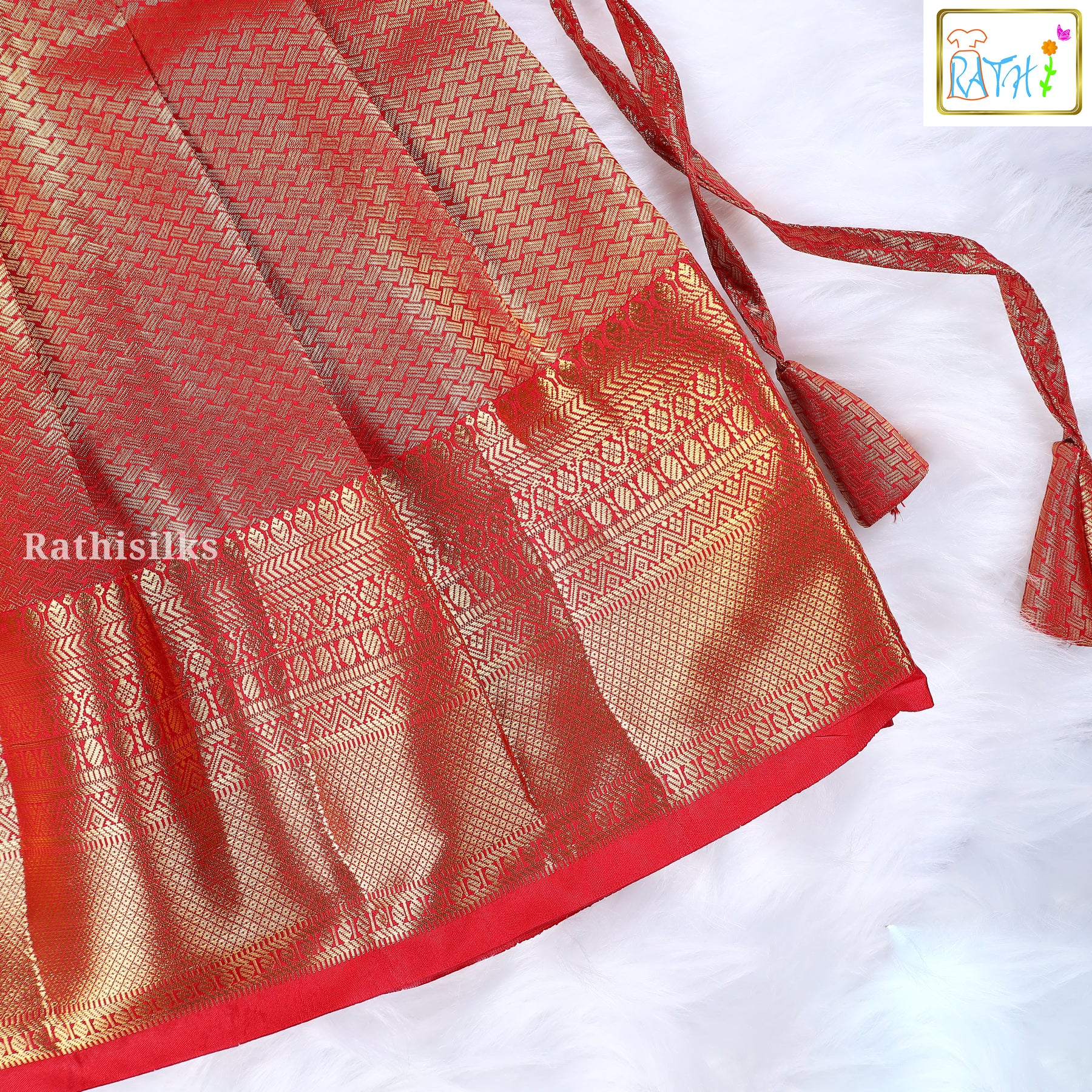 Traditional Mangalagiri Cotton Pavadai Set for Girls – Red & Gold Combination