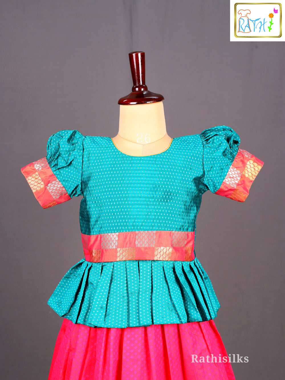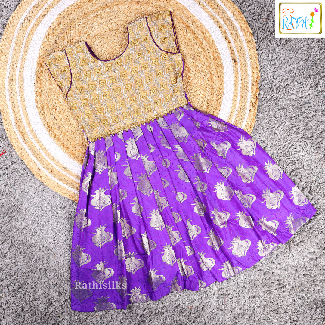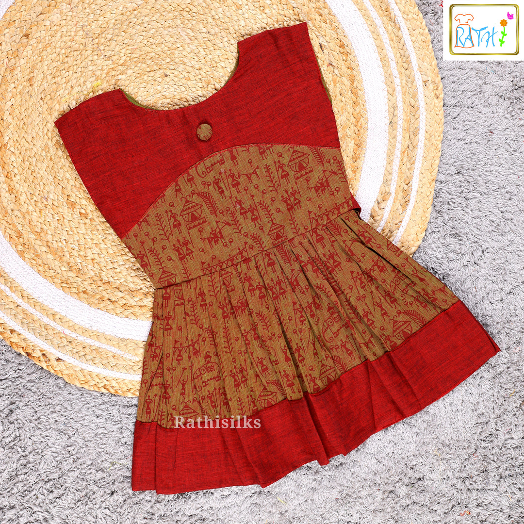 Elegant Brown & Maroon Mangalagiri Cotton Short Frock