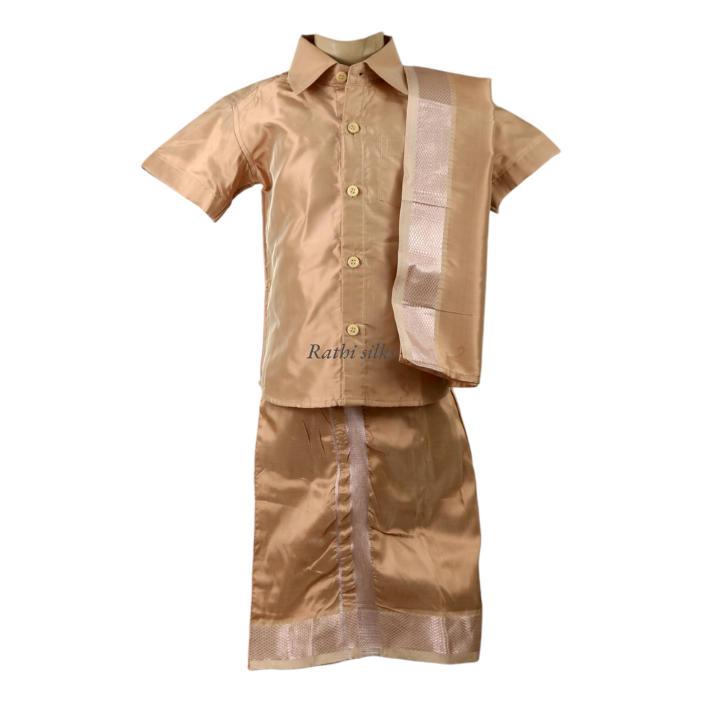 Kid’s Traditional Art Silk Dhoti Shirt Set with Angavastram