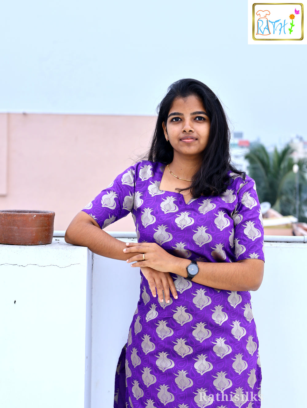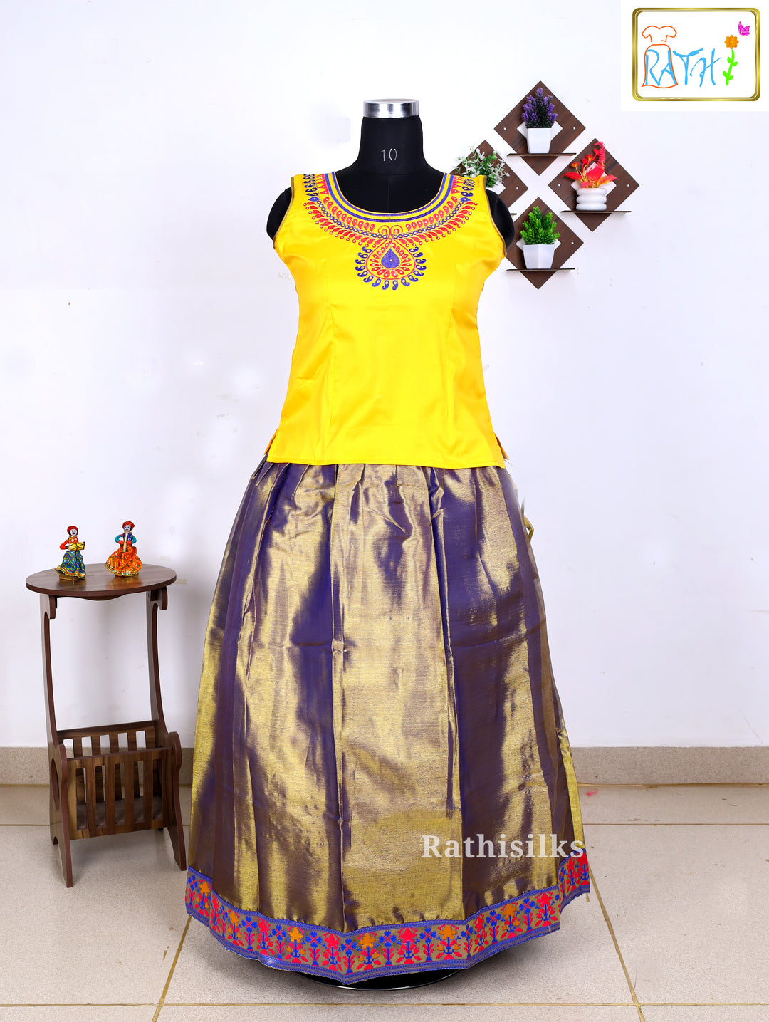 Yellow Embroidered Karishma Top with Purple Art Silk Pavadai Set