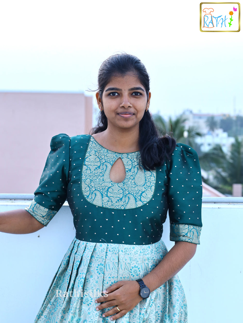 Festive Pink Karishma Top & Mint Green Art Silk Pavadai Set