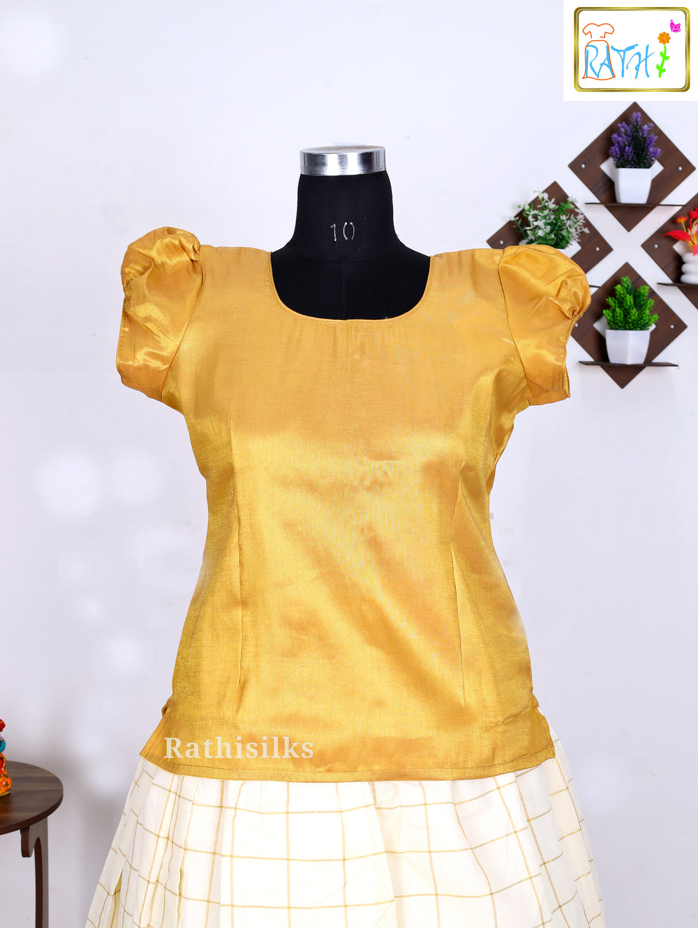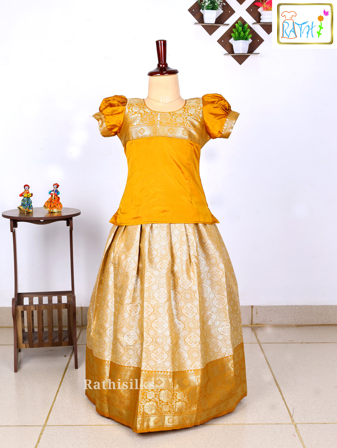 Mustard Yellow Karishma Top with Cream & Gold Art Silk Pavadai Set