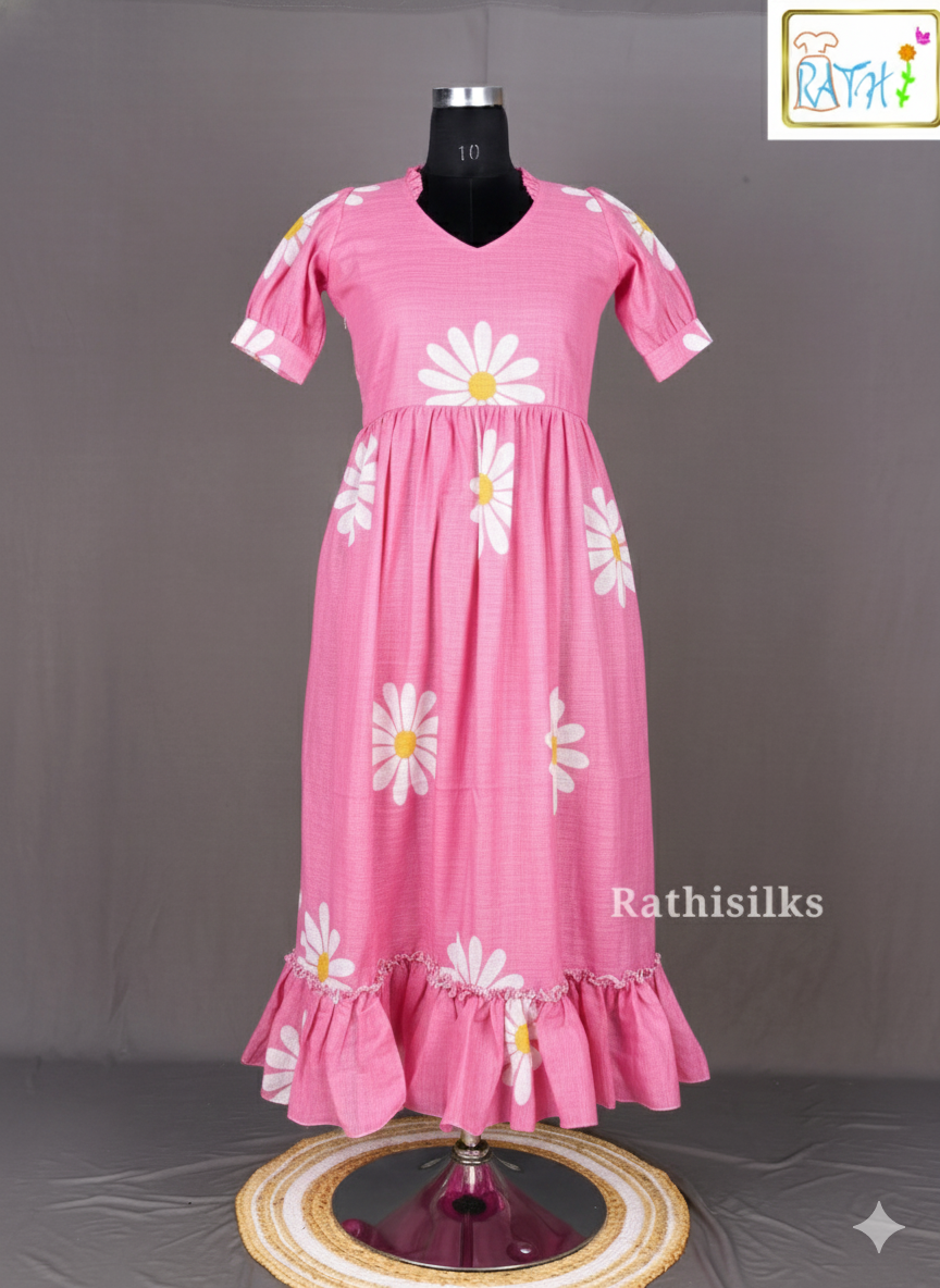 Festive Pink Karishma Top & Yellow Art Silk Pavadai Set