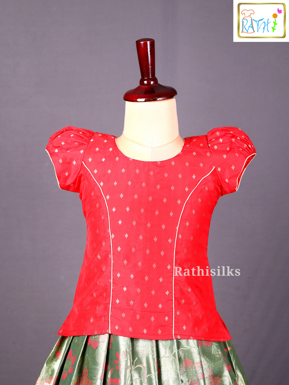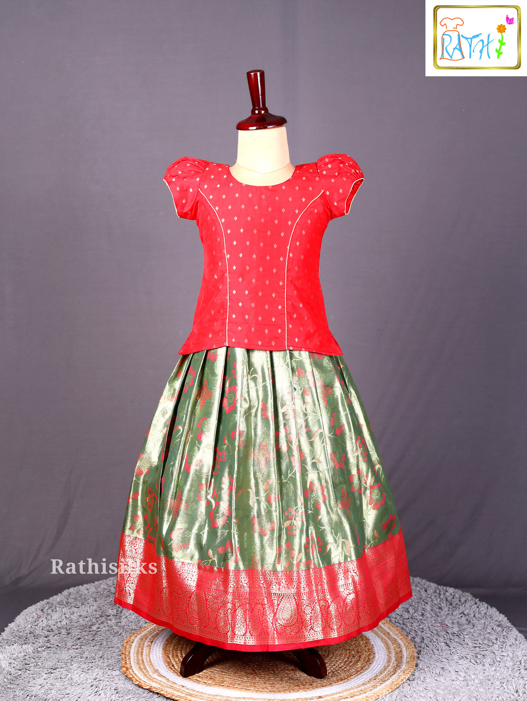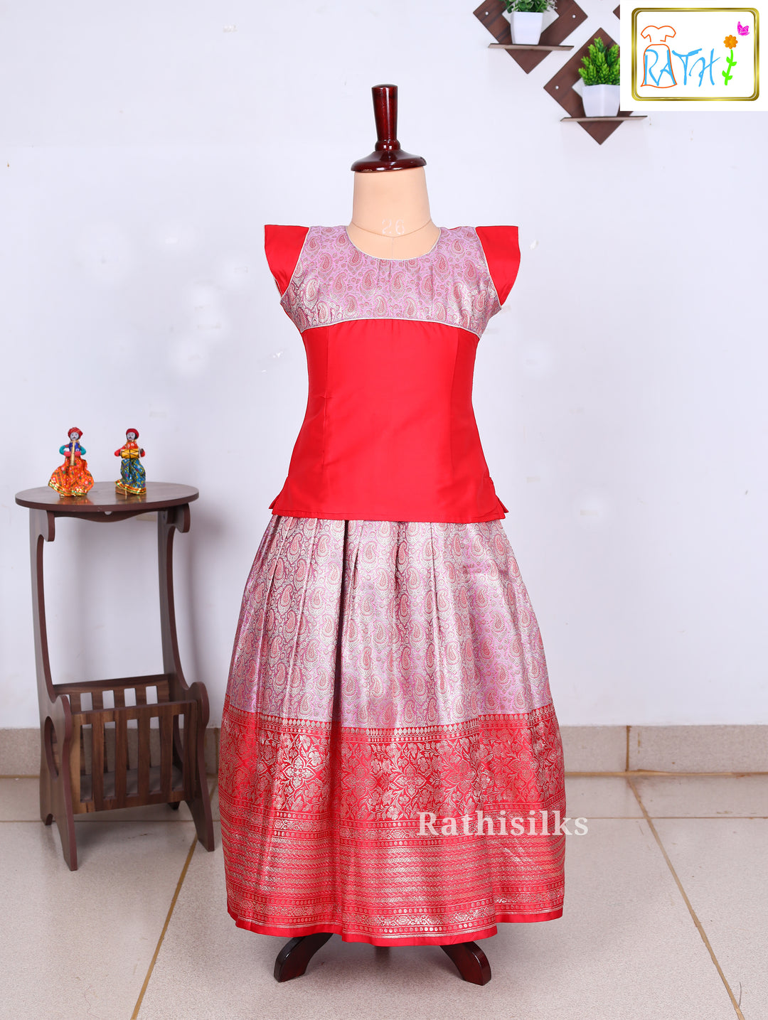Red & Silver Karishma Top Art Silk Pavadai Set