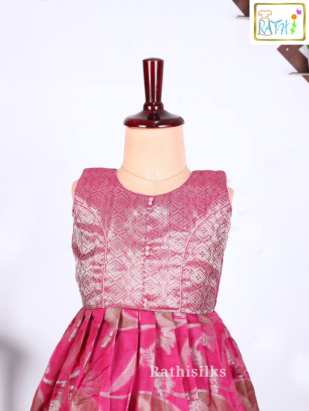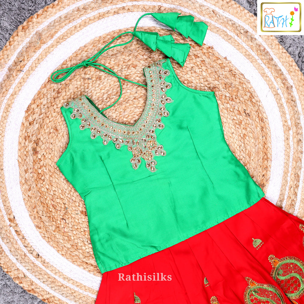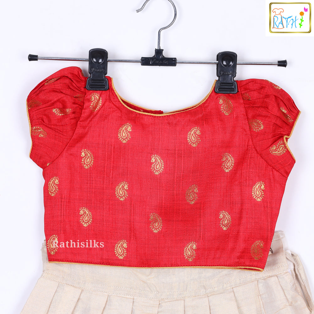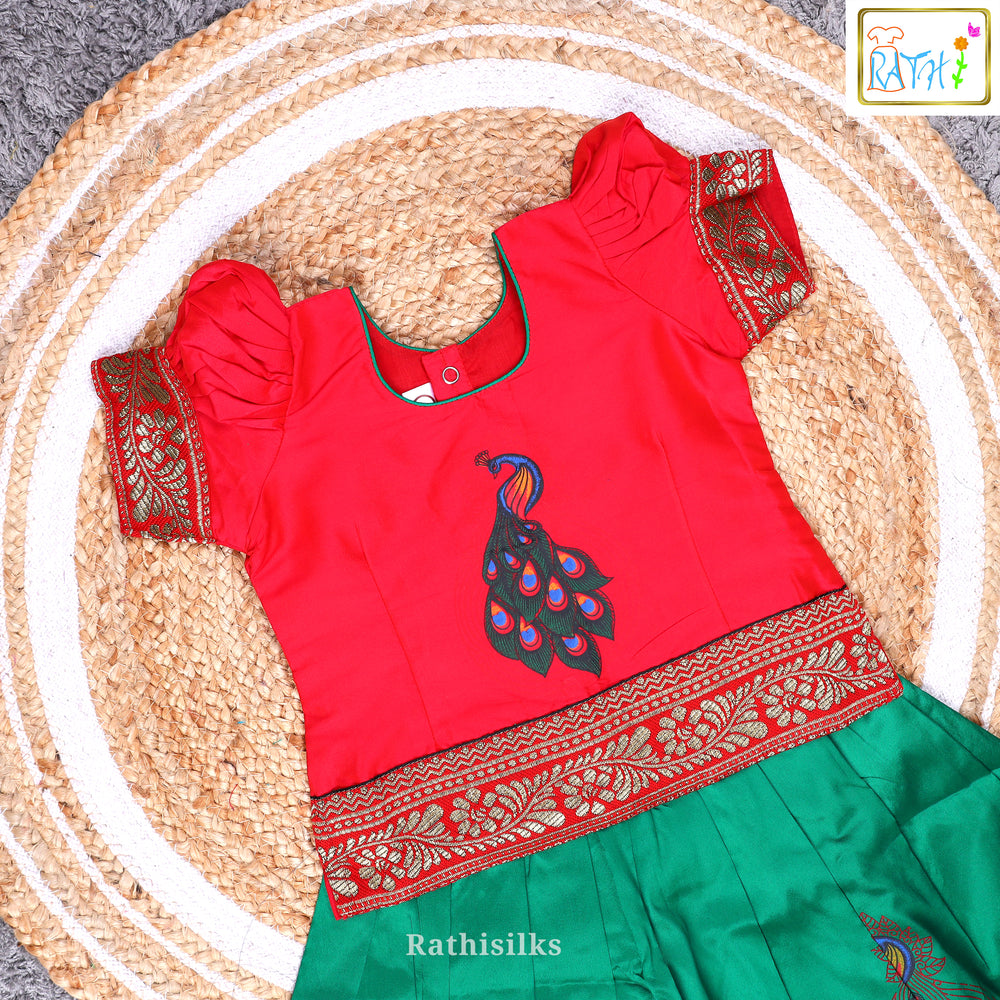 Red & Silver Karishma Top Art Silk Pavadai Set