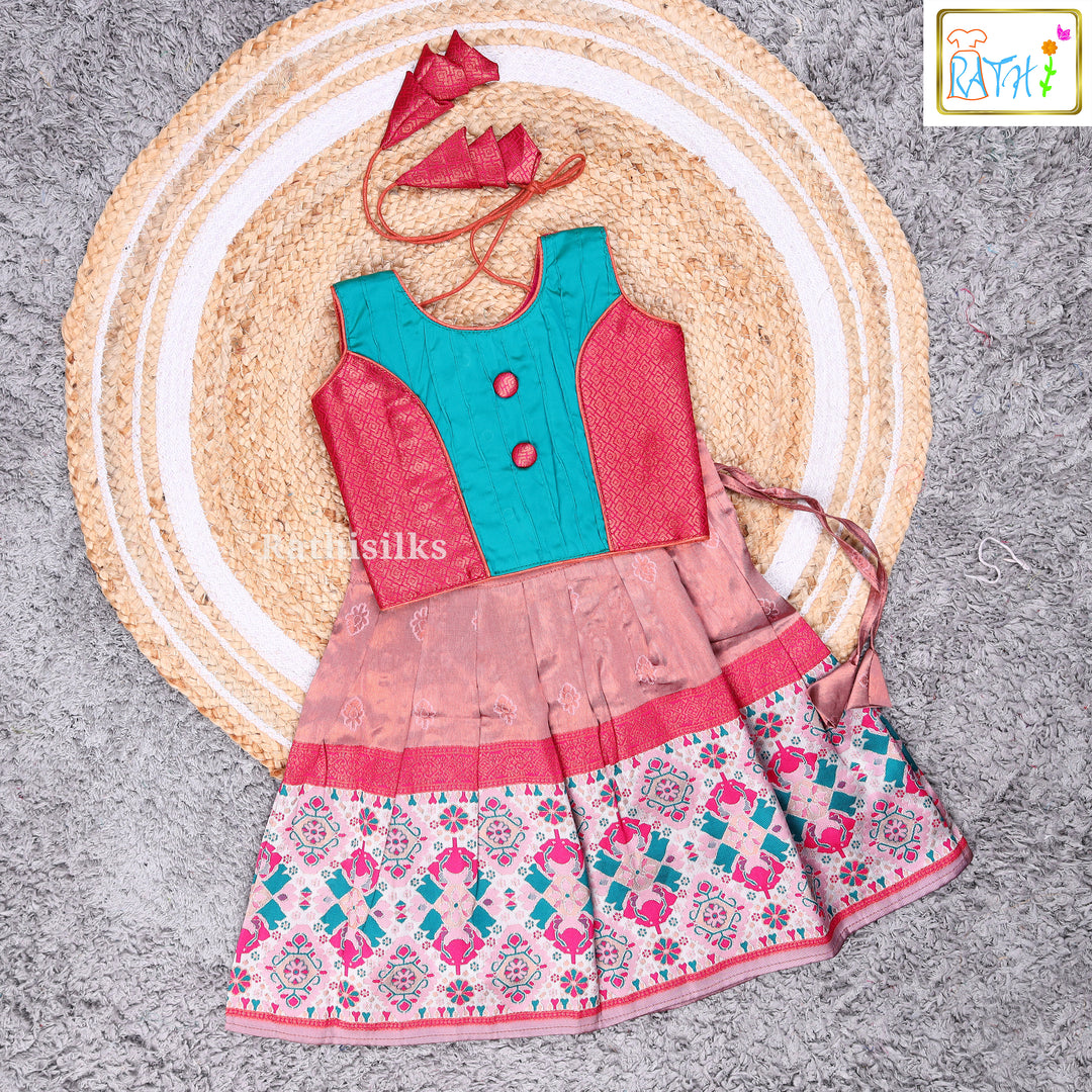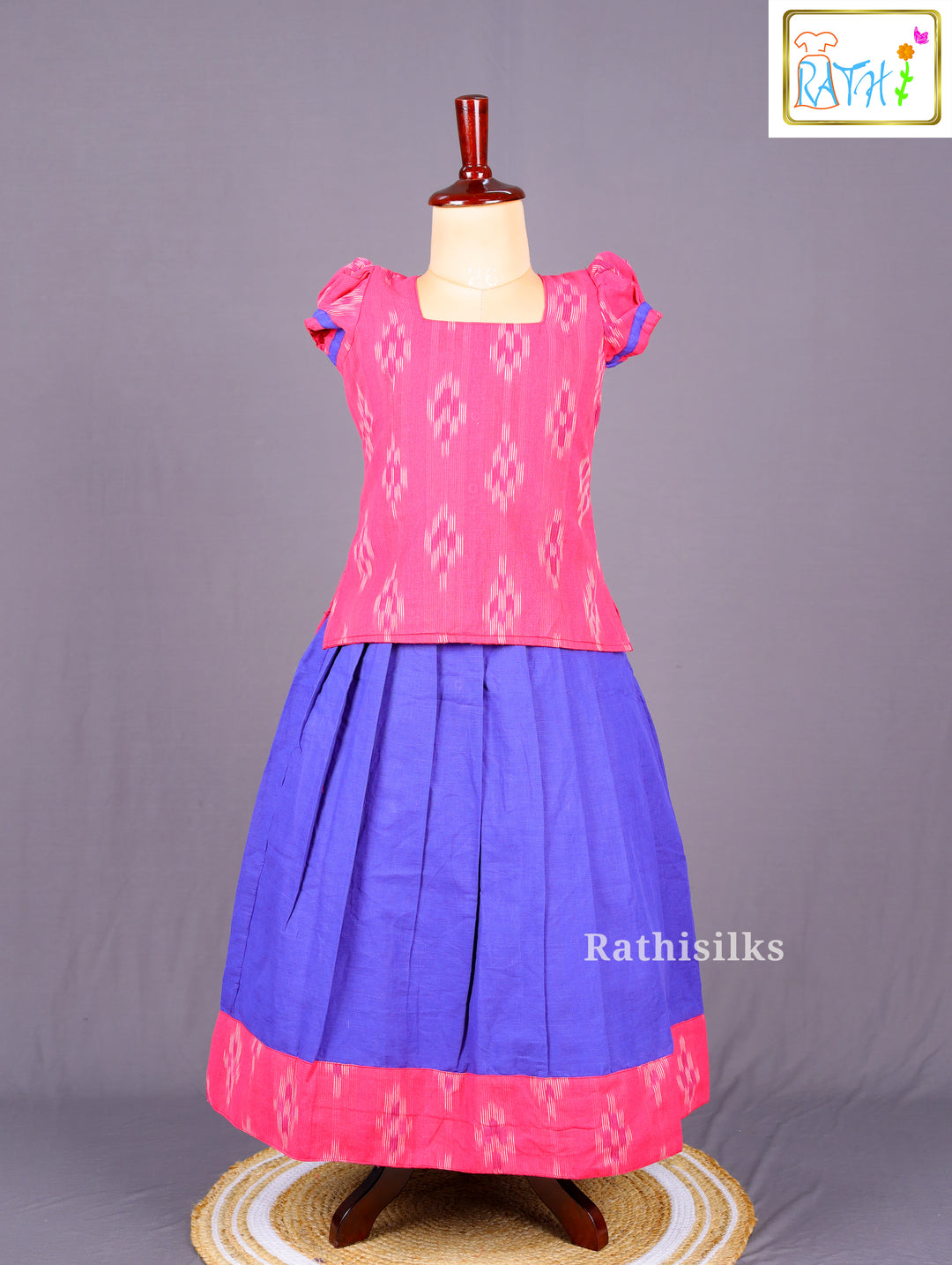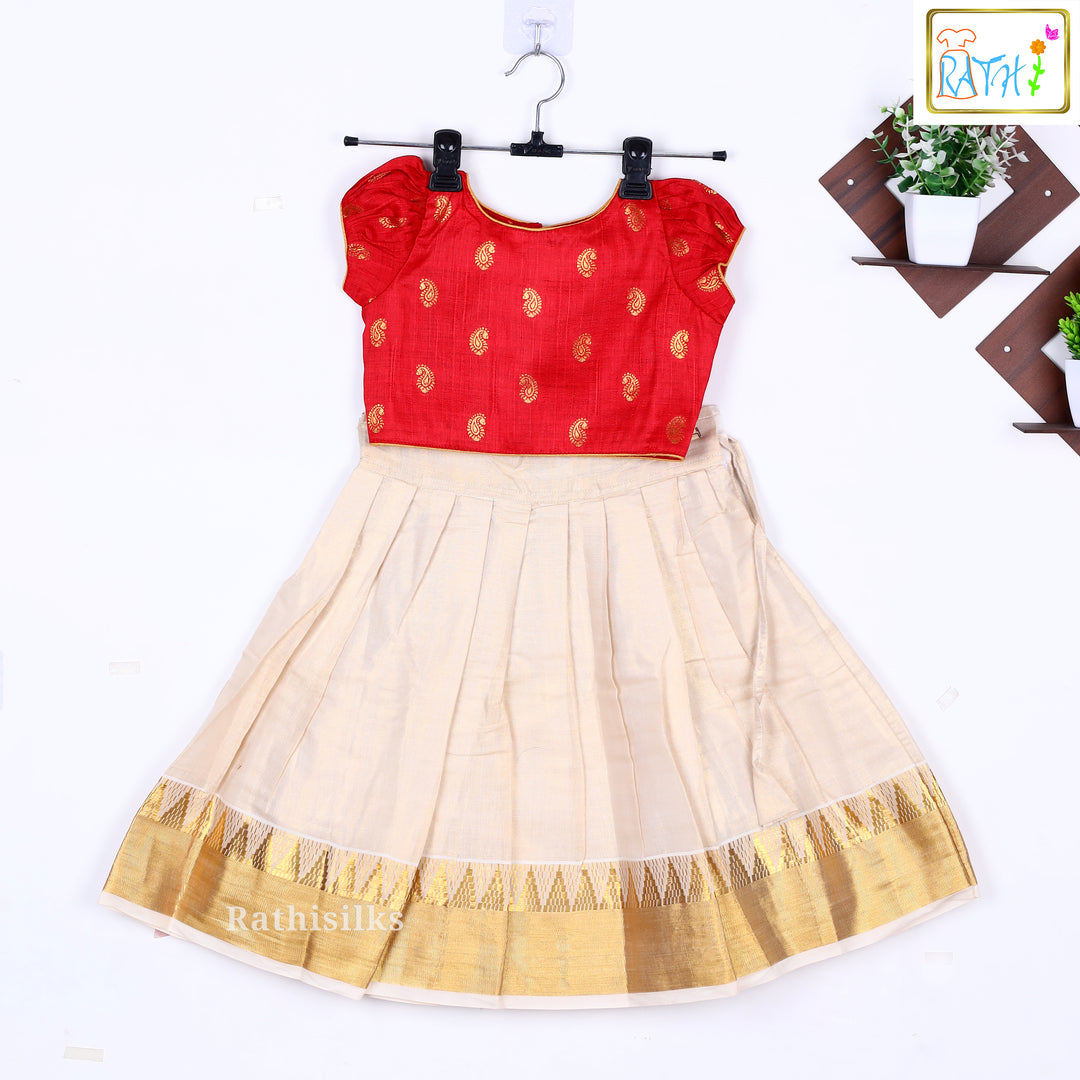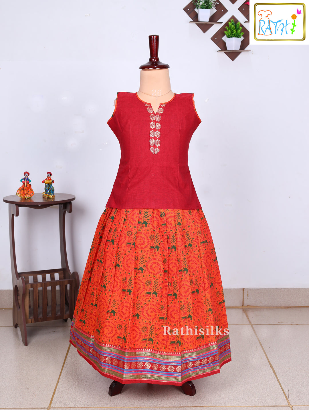 Red & Orange Mangalagiri Cotton Pavadai Set
