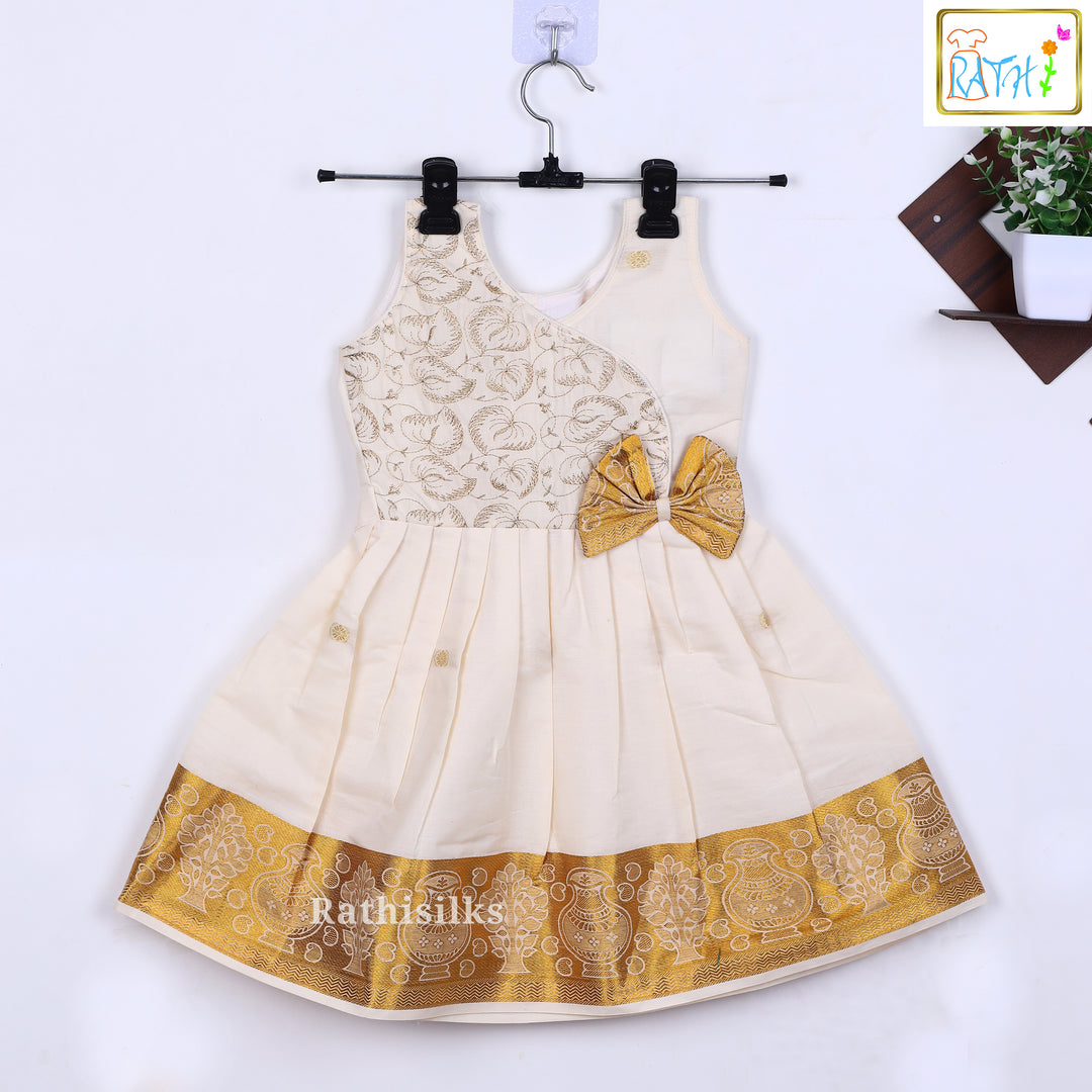 Cream Cotton Embroidered Frock with Red Attached Coat