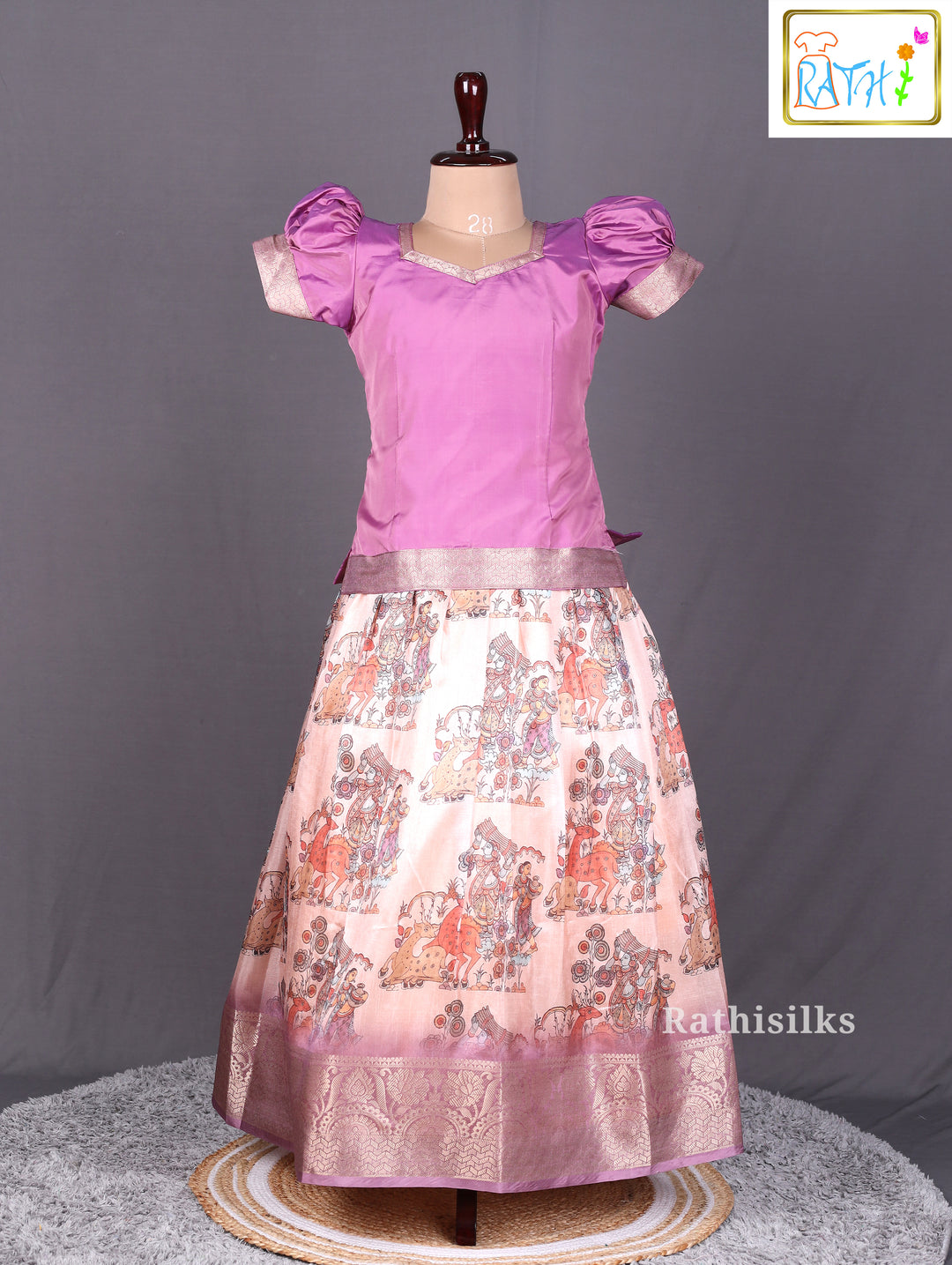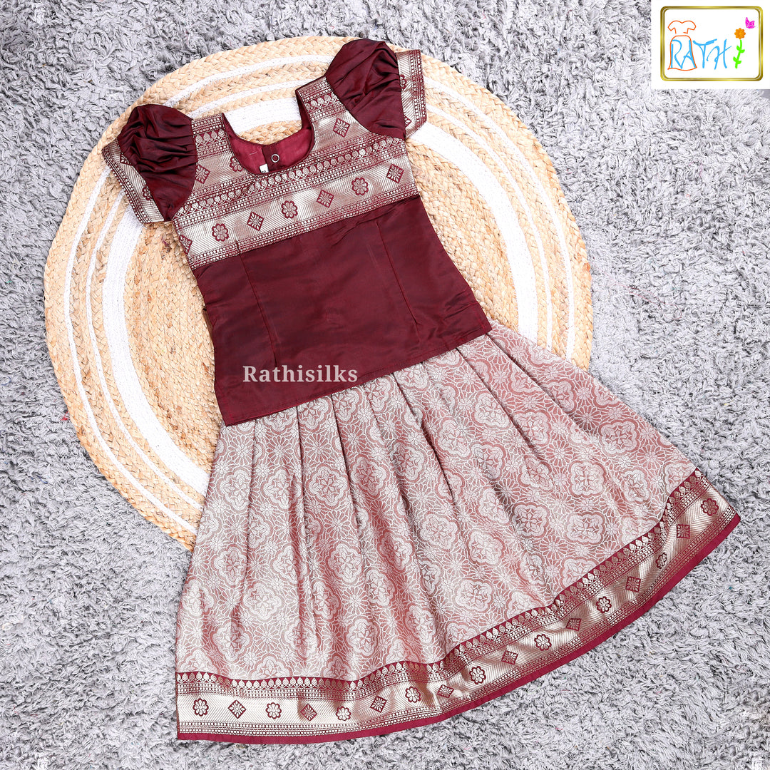Maroon Art Silk Pattu Pavadai Set for Girls