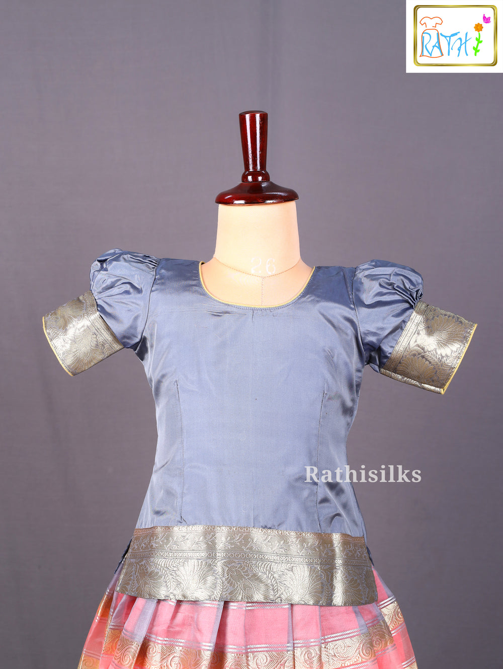 Elegant Pink & Aqua Art Silk Pavadai Set