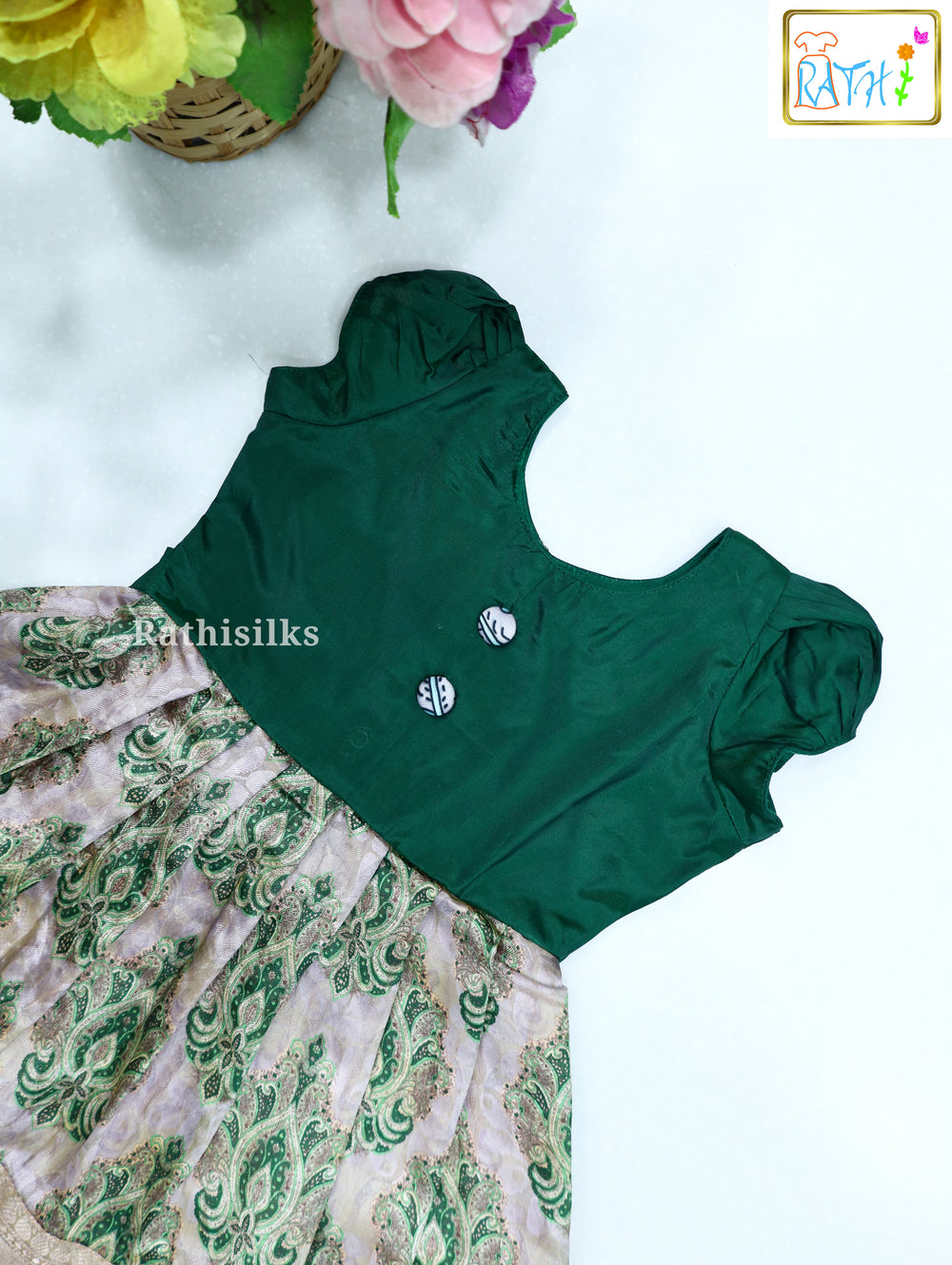 Cream & Green Cotton Embroidered Frock