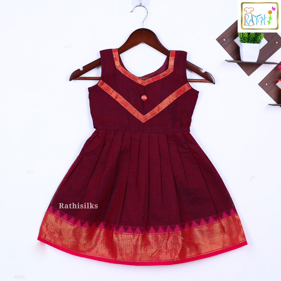 Maroon Narayanapet Cotton Long Frock