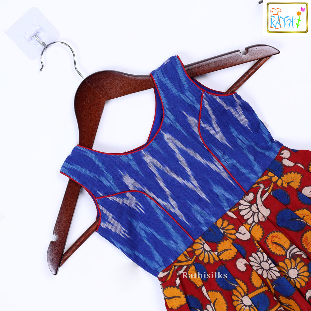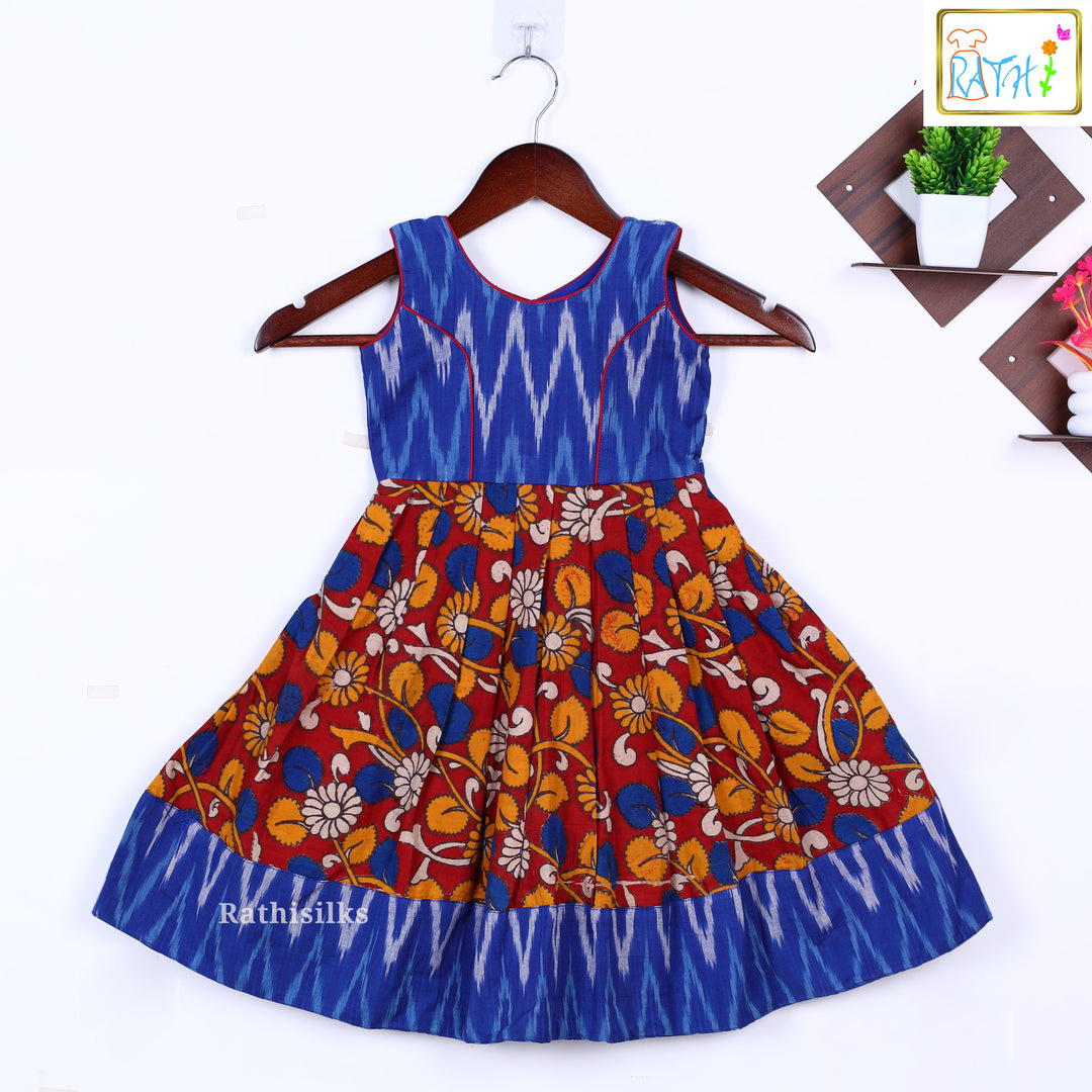 Blue Ikat & Kalamkari Cotton Frock