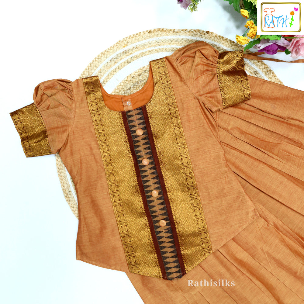 Traditional Orange & Pink Jacquard Pavadai Sattai