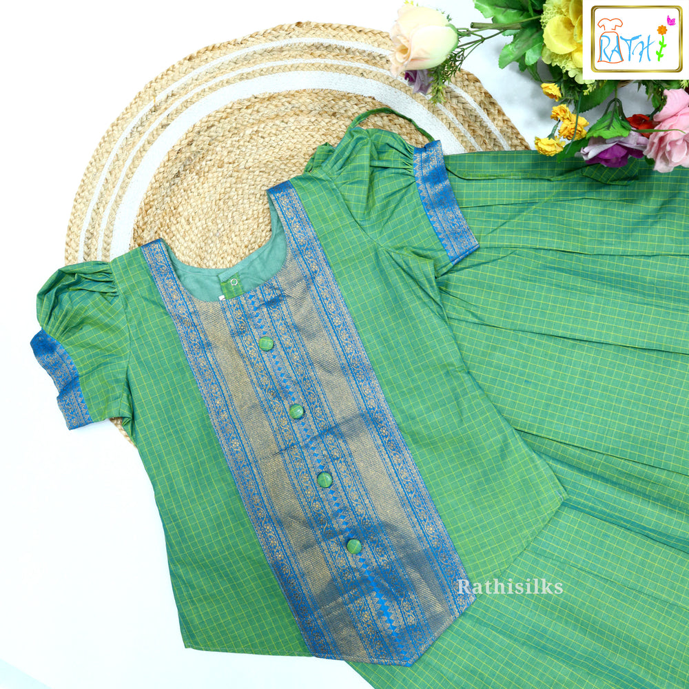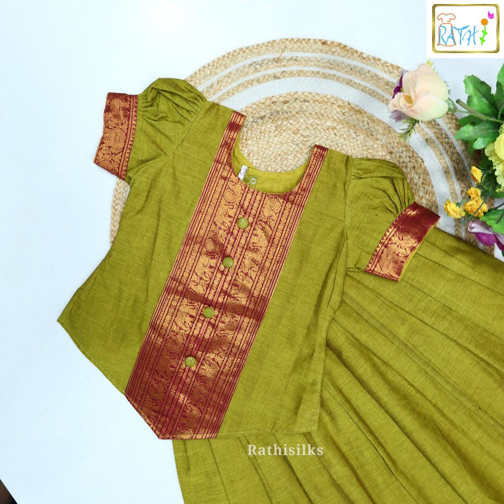 Traditional Green & Yellow Pavadai Sattai