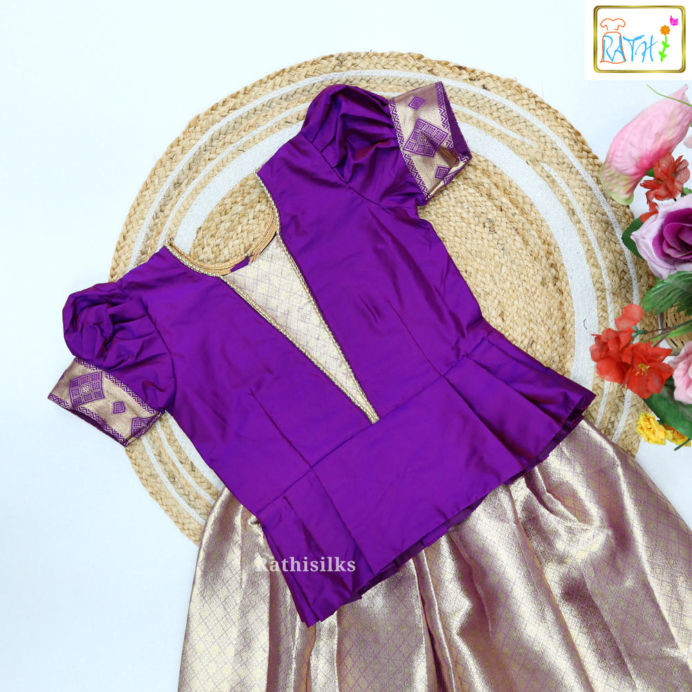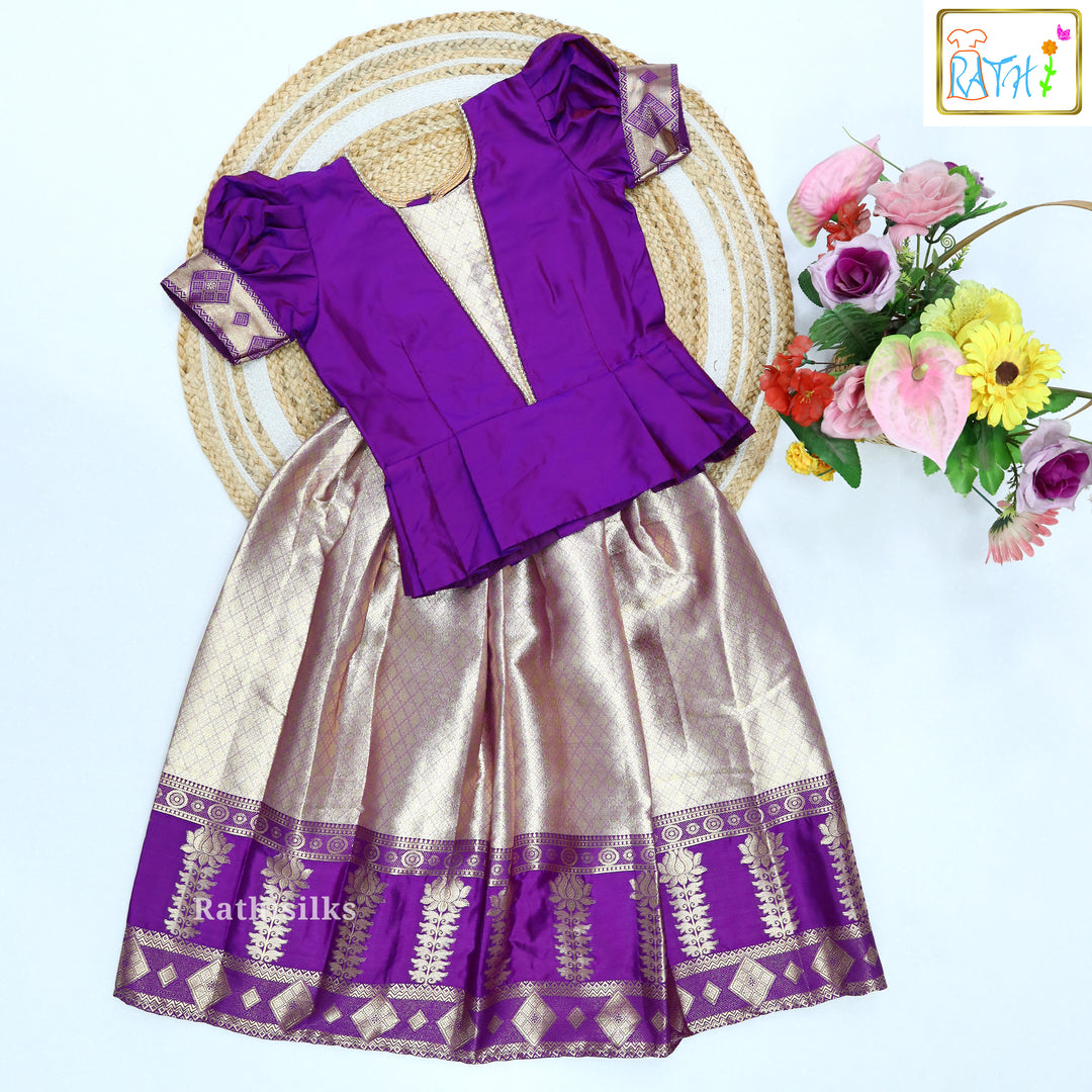 Karishma Puff-Sleeve Top with Traditional Art Silk Pavadai Set