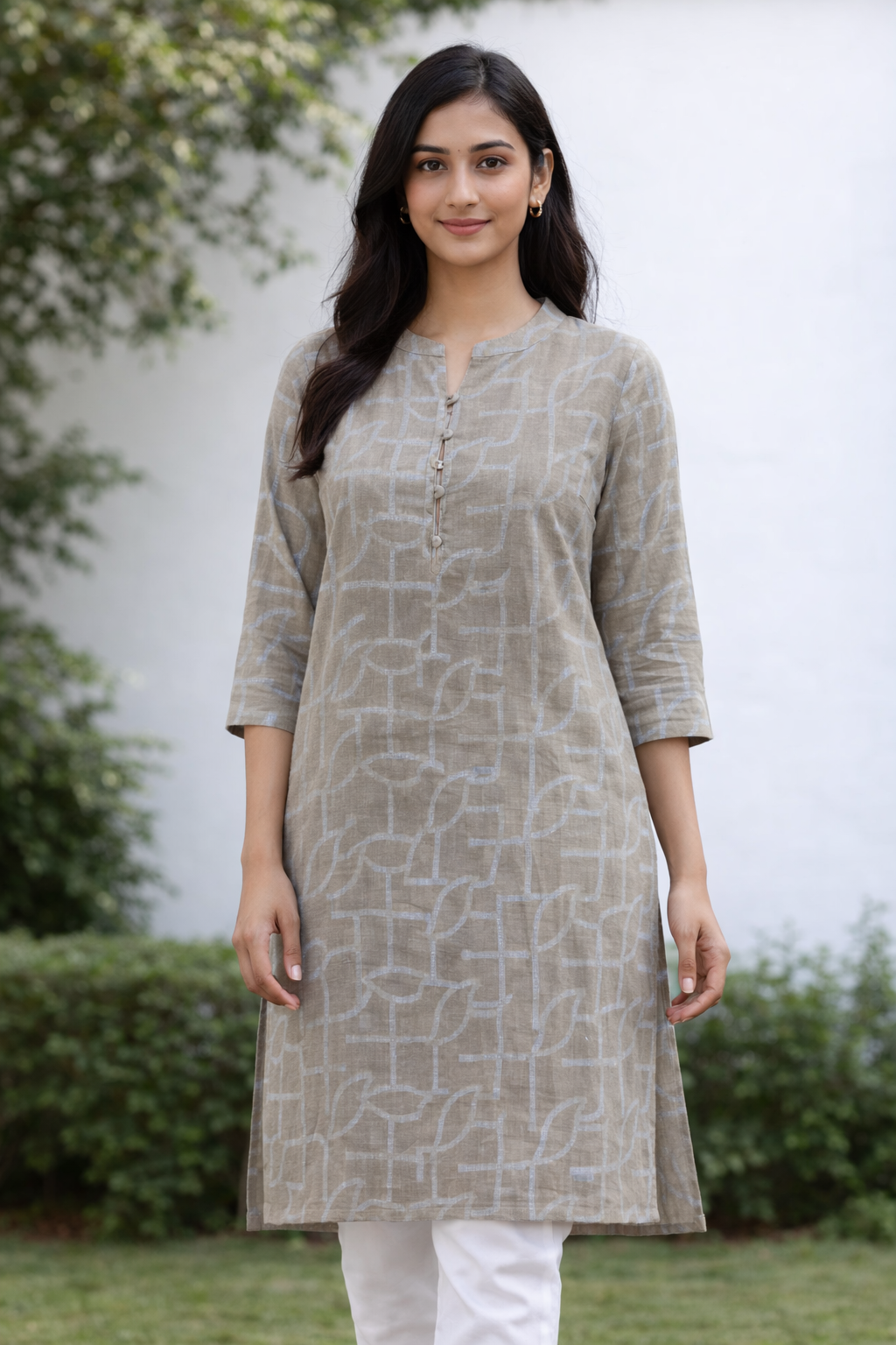 Elegant Grey Ikath Kurti Top