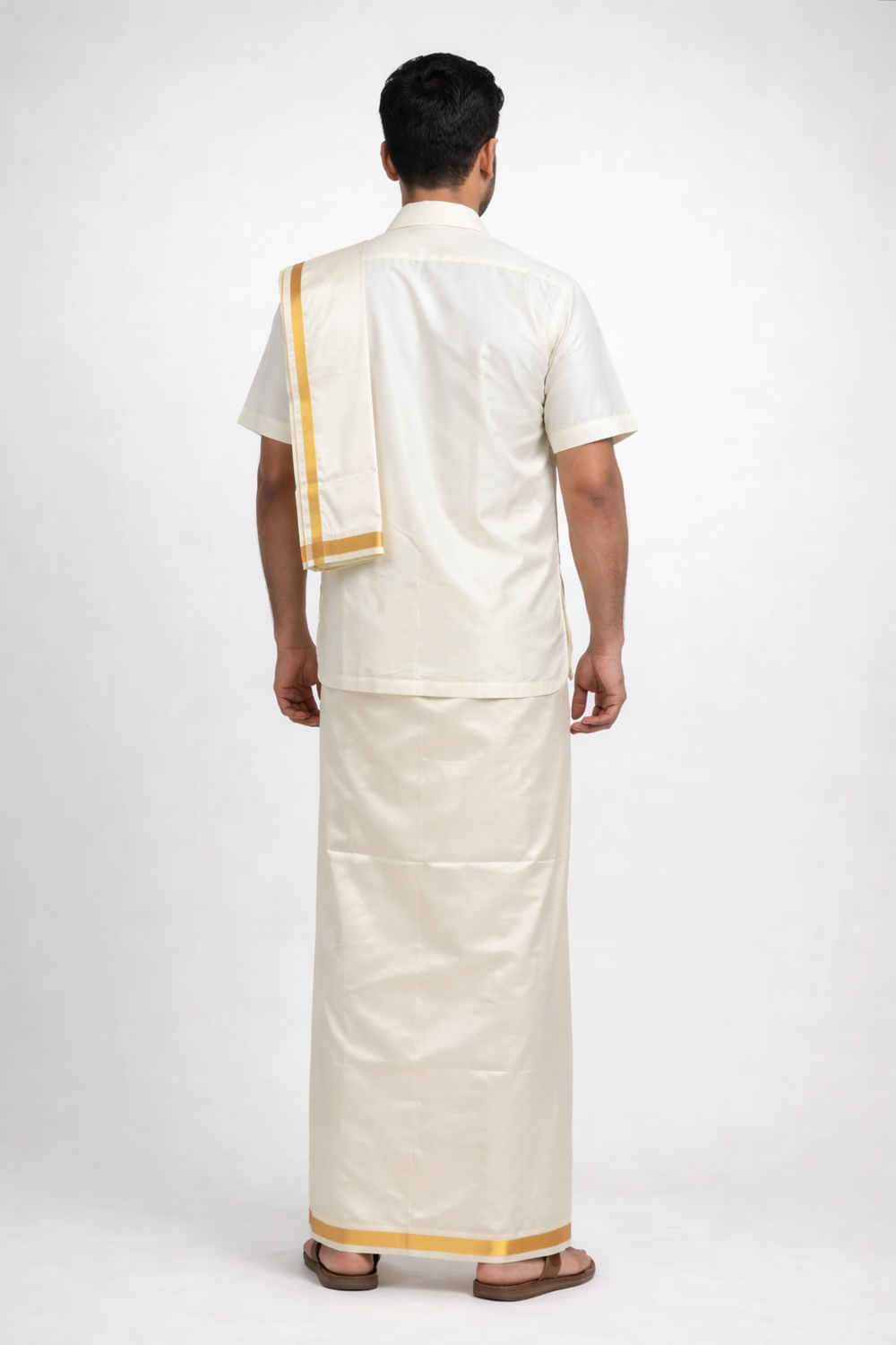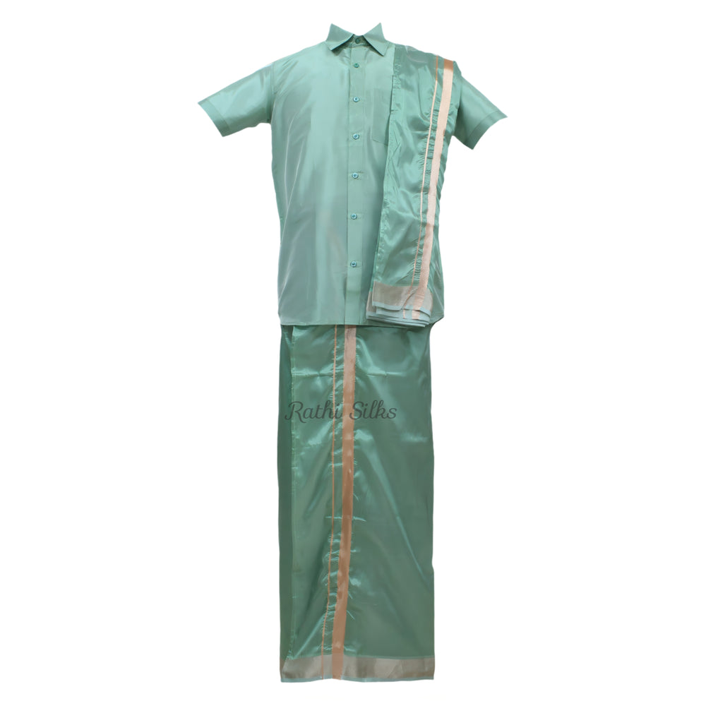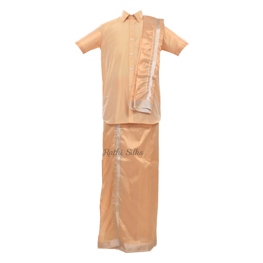 Men’s Traditional Art Silk Dhoti Set with Shirt & Angavastram. MEN'S Dhoti shirt