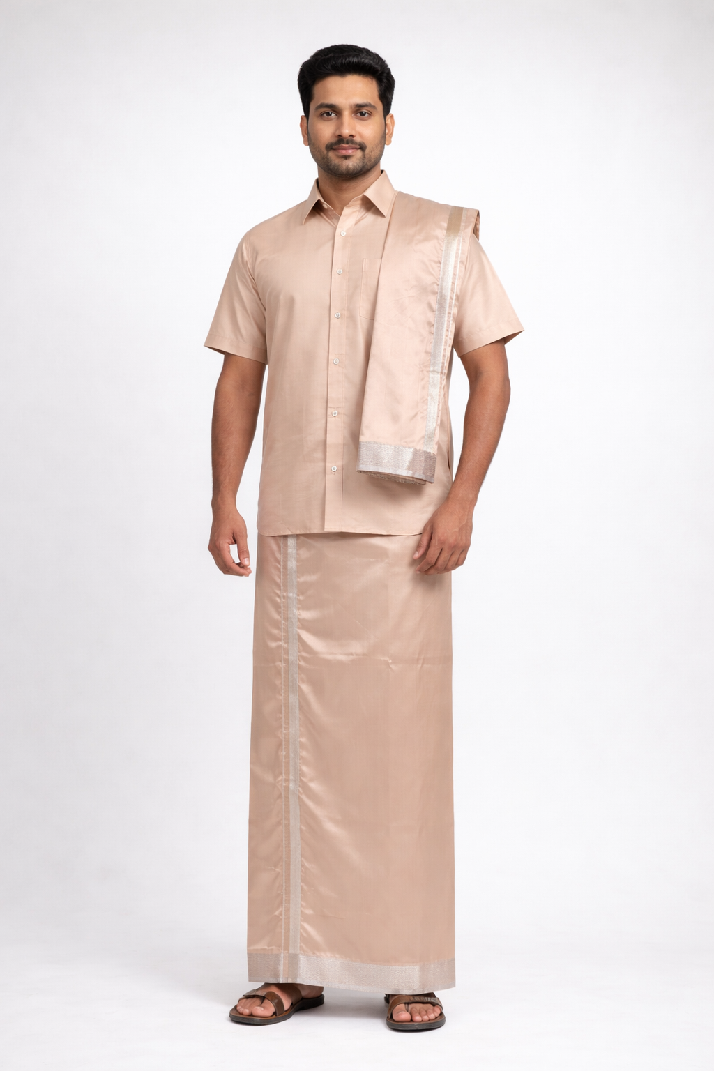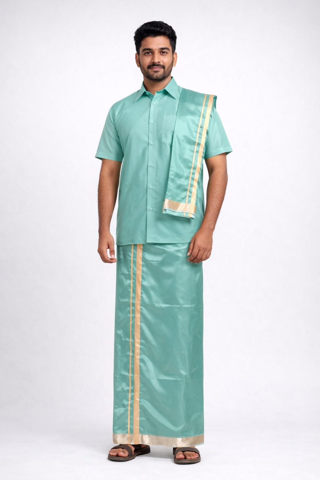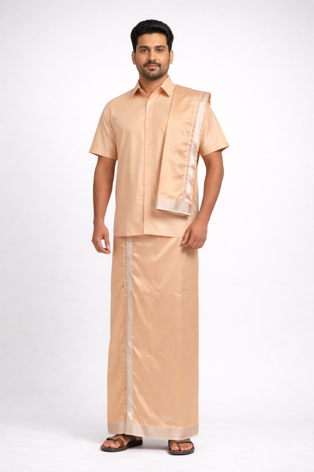 Men’s Traditional Art Silk Dhoti Set with Shirt & Angavastram. MEN'S Dhoti shirt