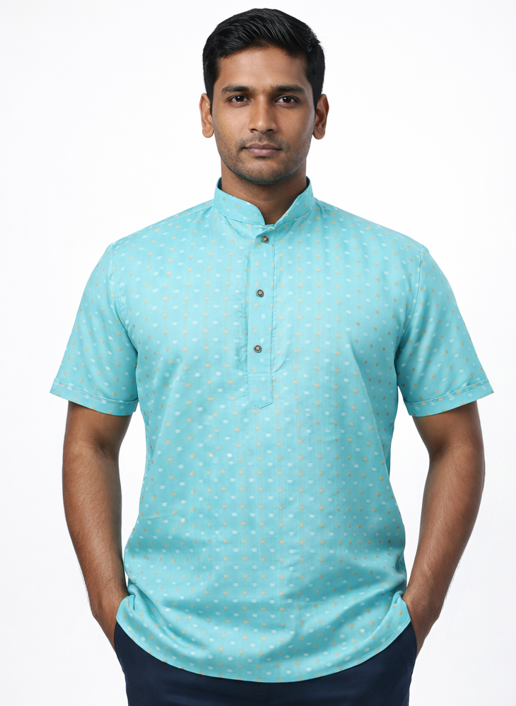 Men’s Traditional Chanderi Cotton Printed Half Sleeve Kurta